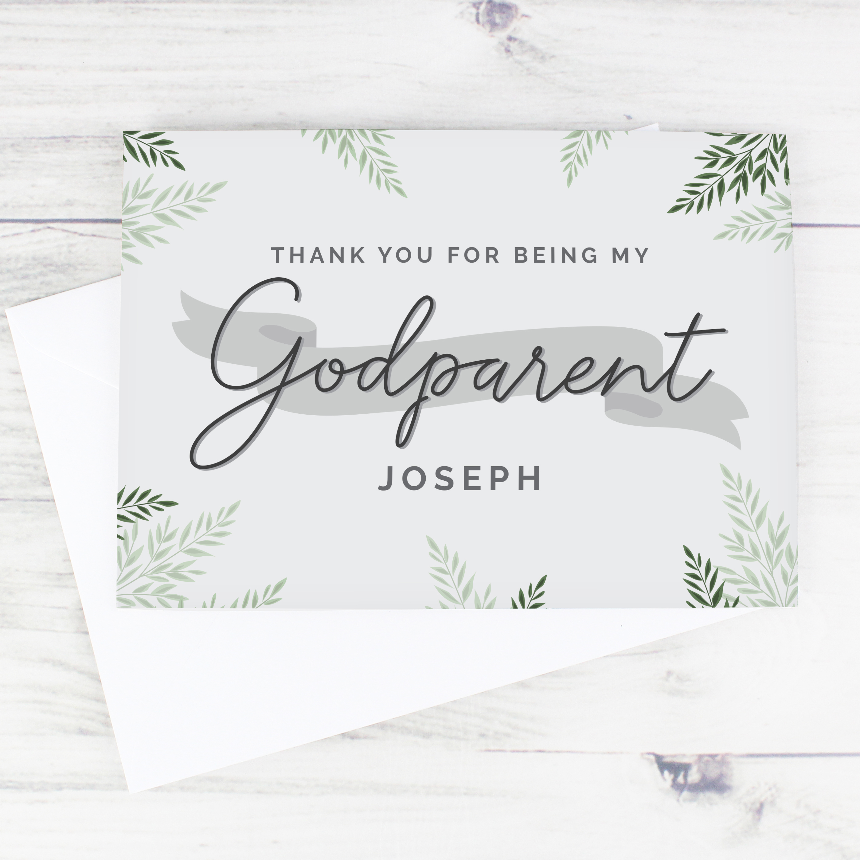 Say thank you to a wonderful godparent with this beautifully personalised card. Featuring the fixed word “Godparent,” it is a heartfelt way to show your gratitude and make them feel truly appreciated on a special occasion.