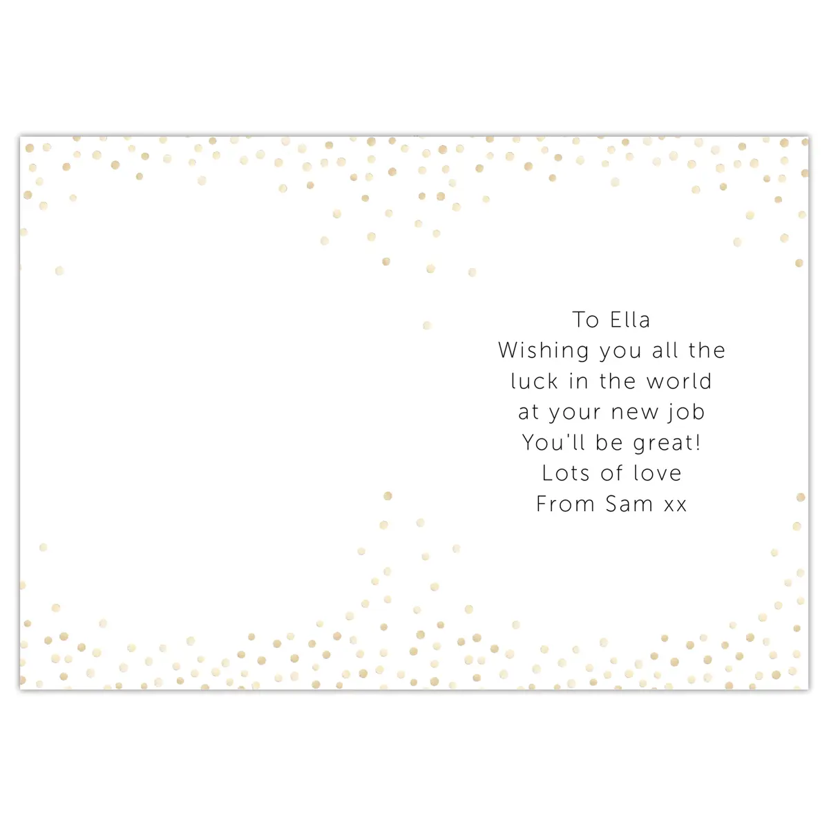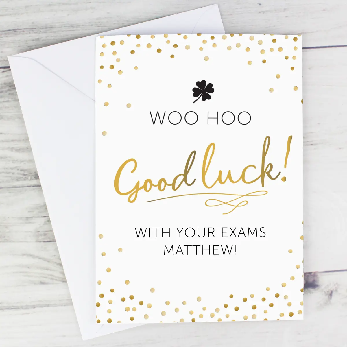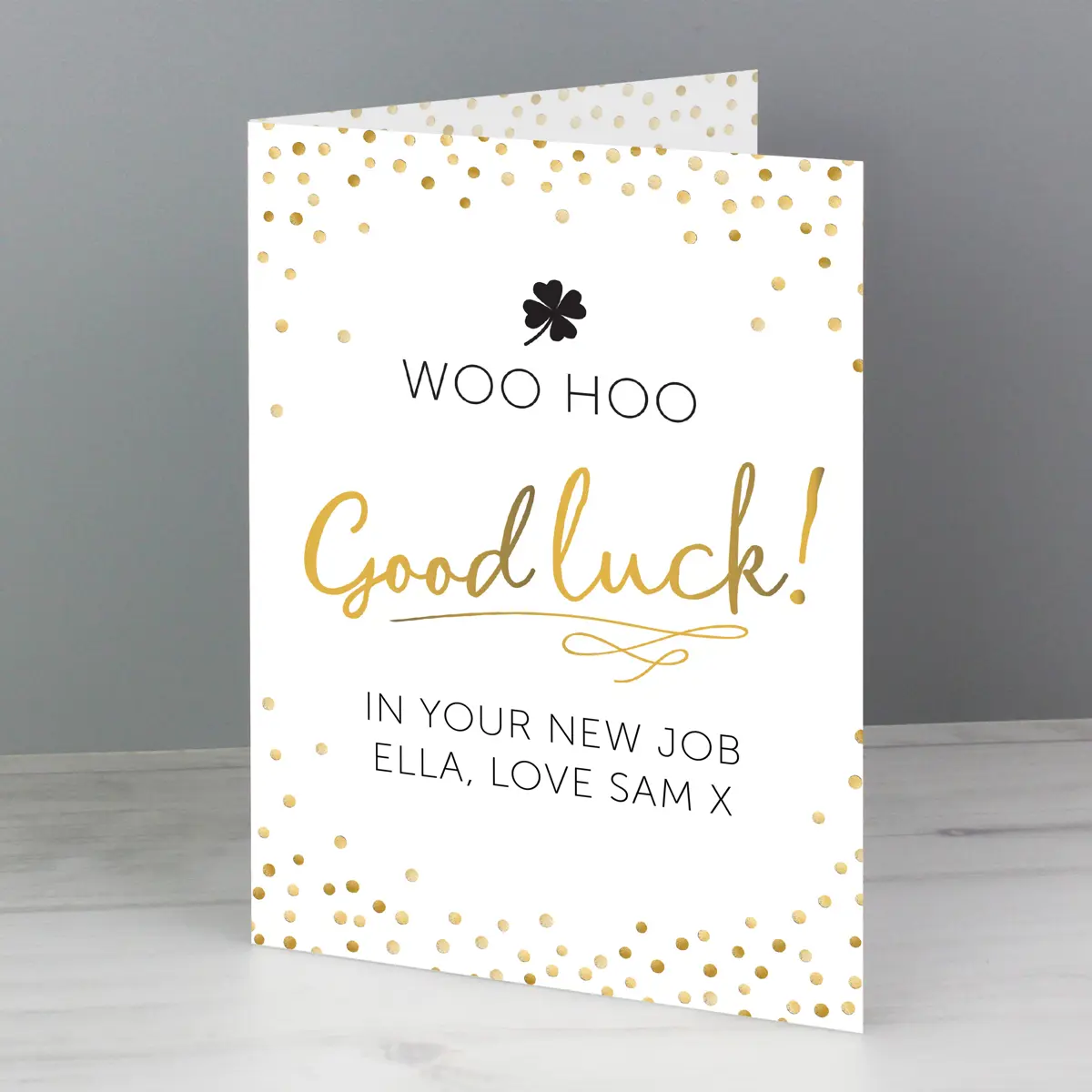 Wish them all the very best with this bright and modern personalised good luck card. Featuring the fixed words “Woo Hoo” and “Good Luck” along with a lucky shamrock icon, it is a thoughtful way to send encouragement before a new job, exam or big life change.