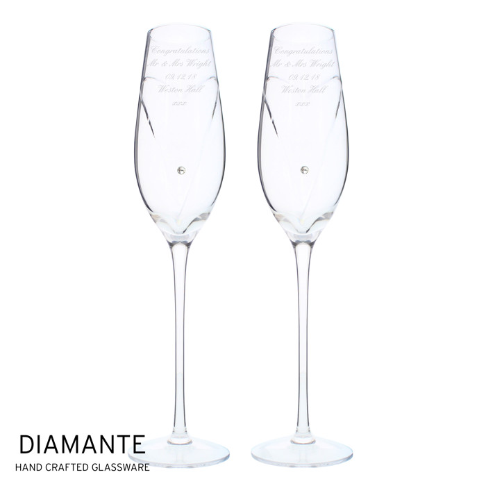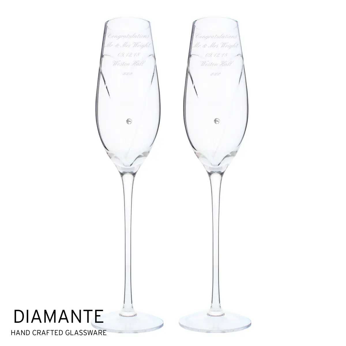 Personalised Hand Cut Heart Pair of Flutes with Gift Box Wedding Gift