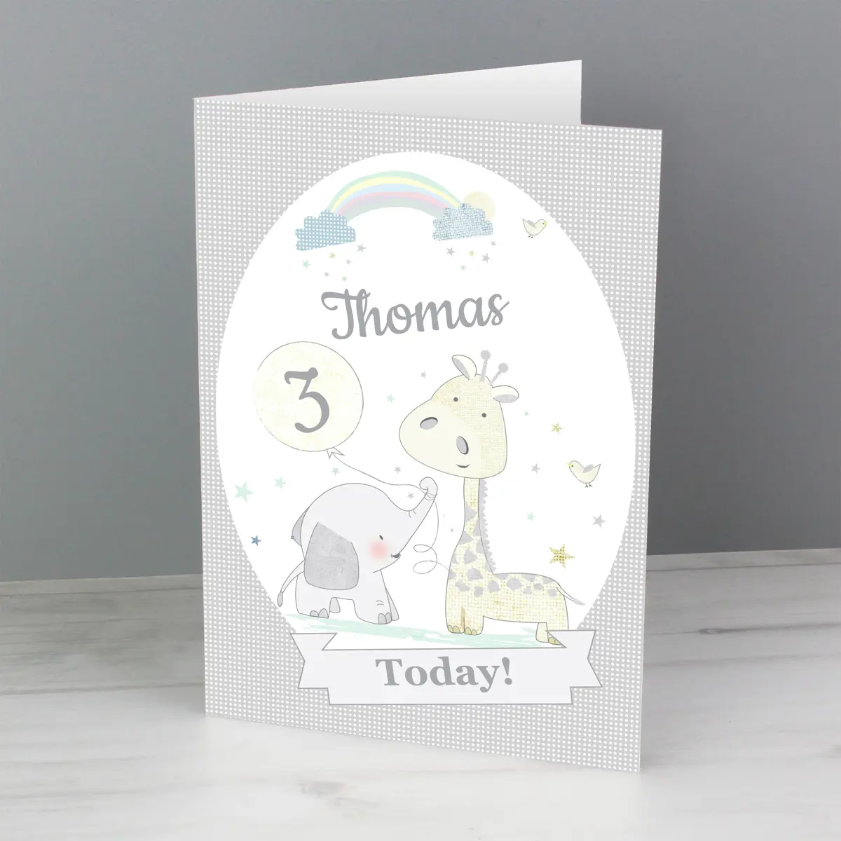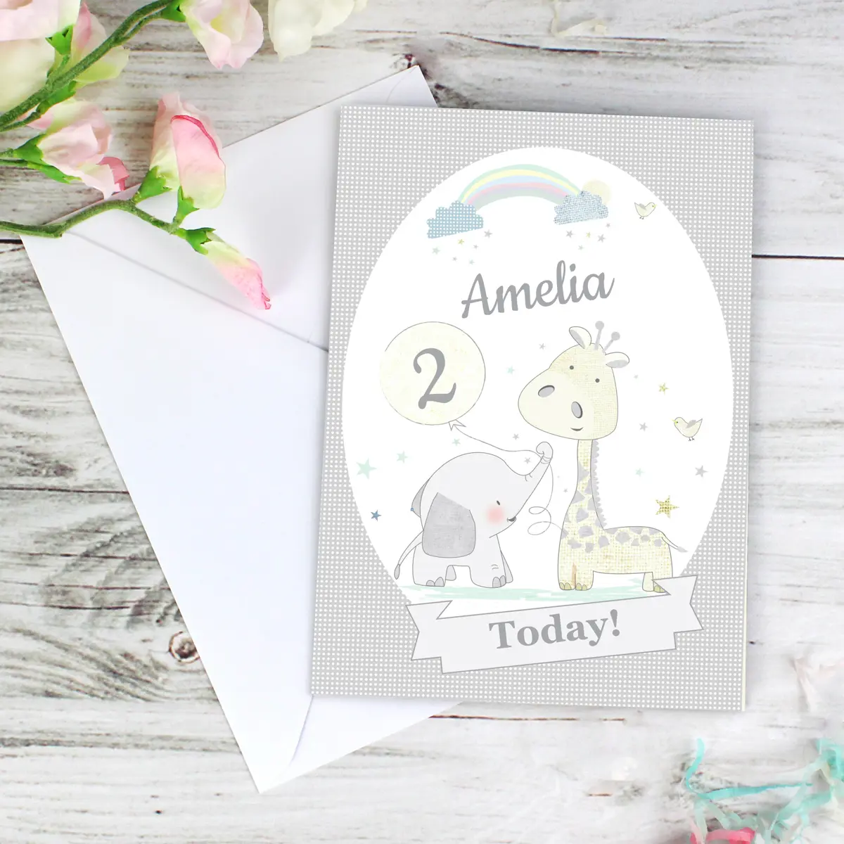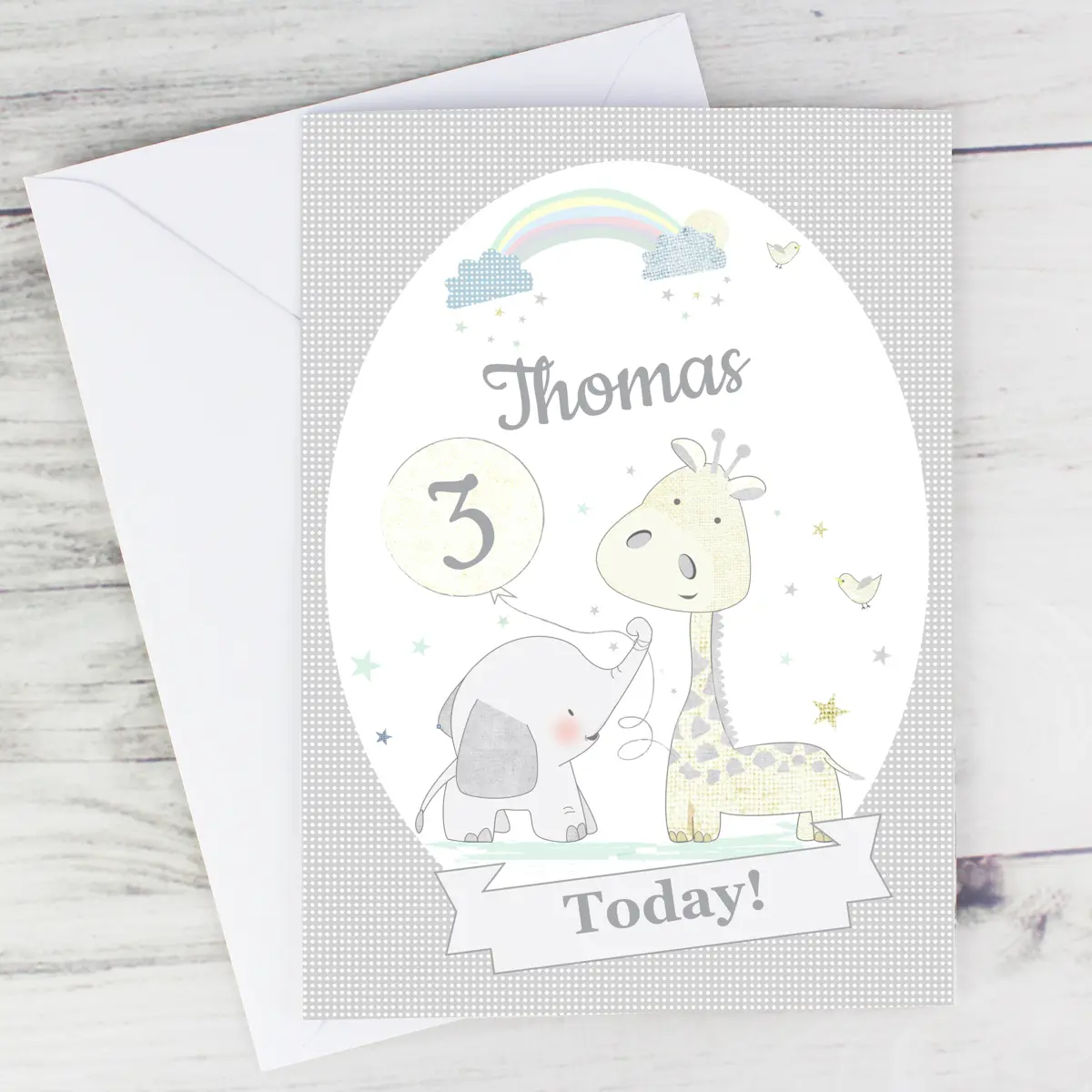 Personalised Hessian Giraffe & Elephant Card