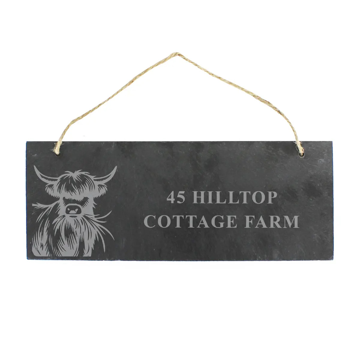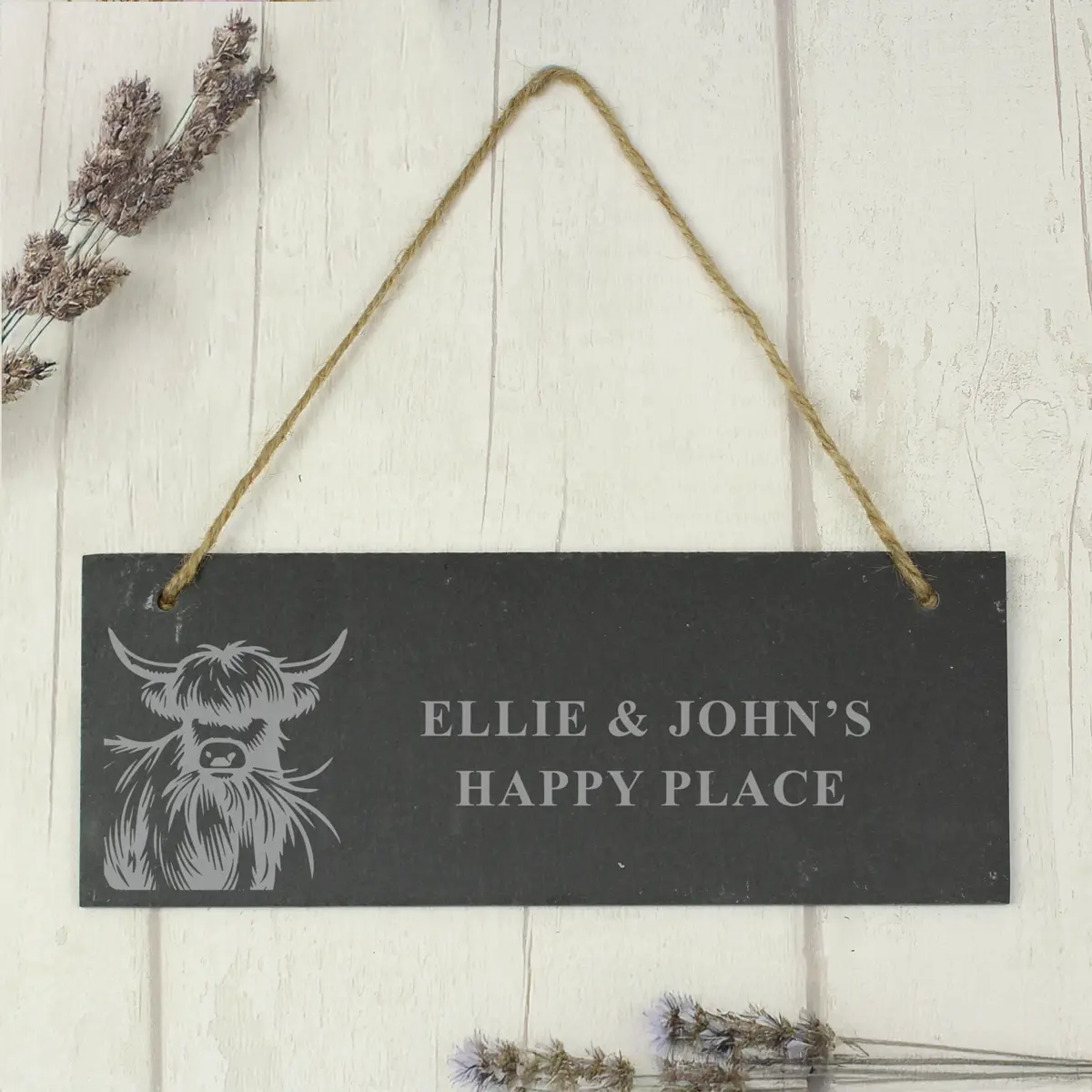 Handcrafted from natural slate, this unique sign features an adorable engraved Highland Cow design, bringing a touch of countryside beauty to any space