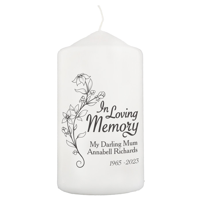 Personalise this In Loving Memory candle with 2 lines of 25 characters and a date up to 15 characters.