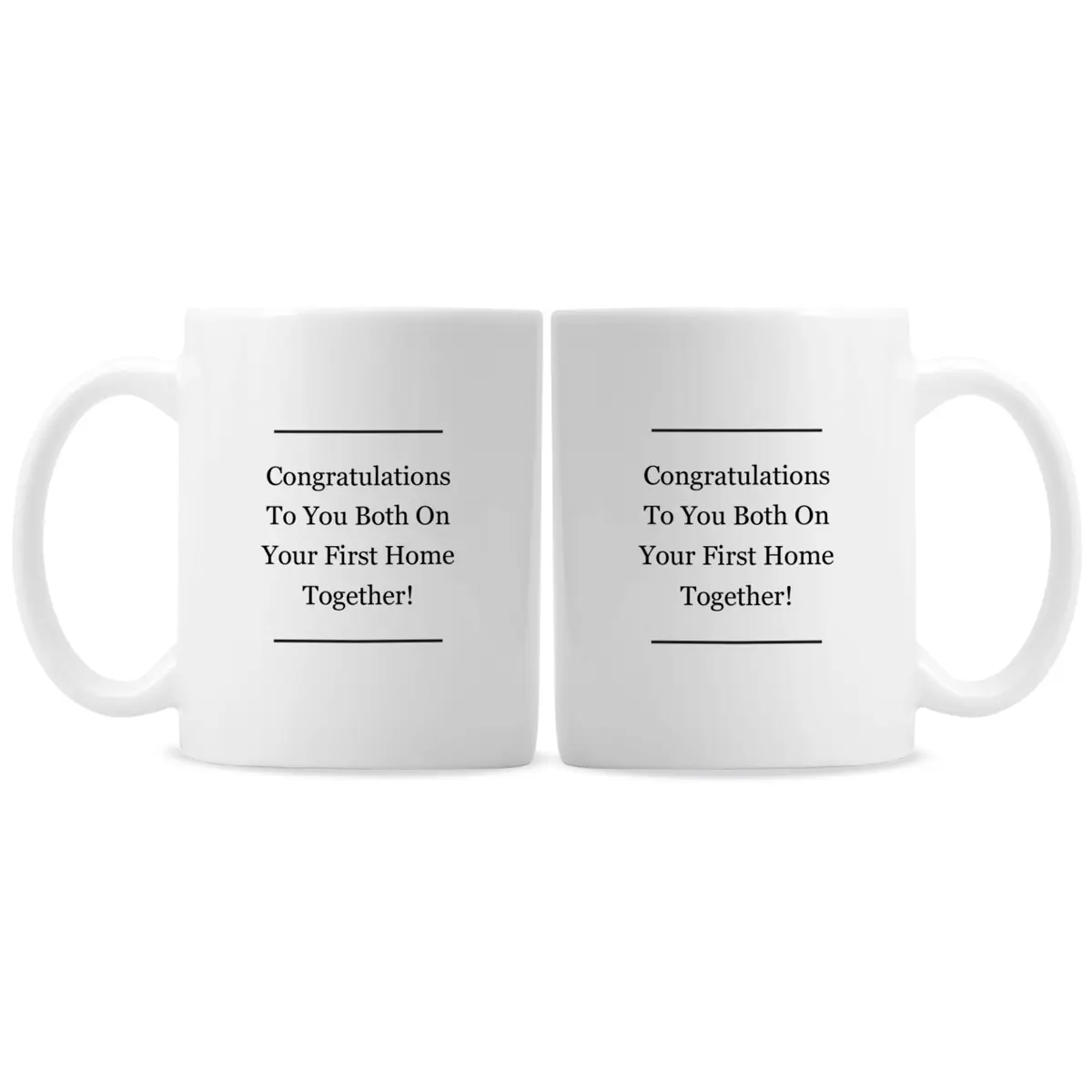 This mug set can be personalised with 2 names with up to 12 characters per name, with one name on each mug. The reverse of the mugs can be personalised with a message over 4 lines, with up to 20 characters per line.