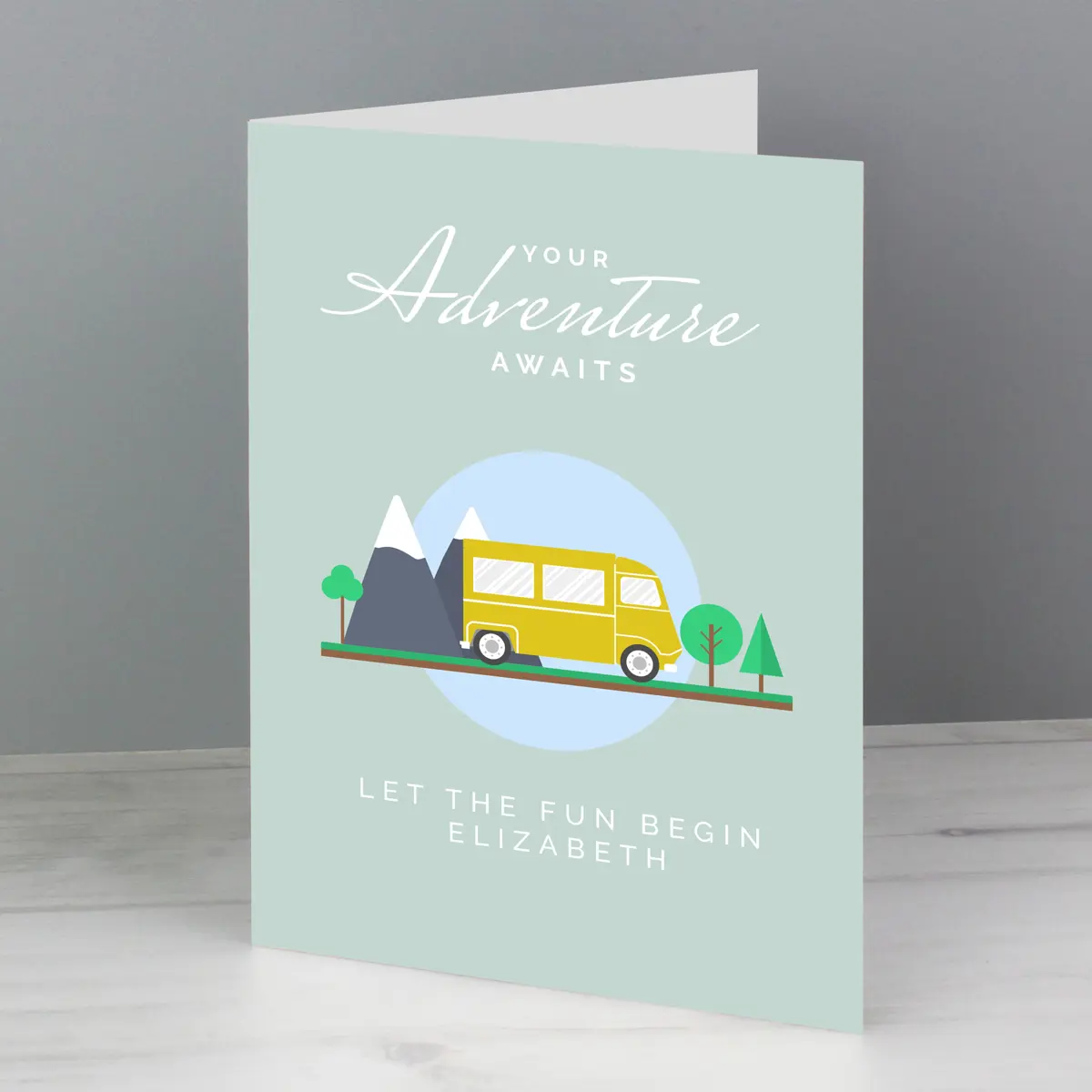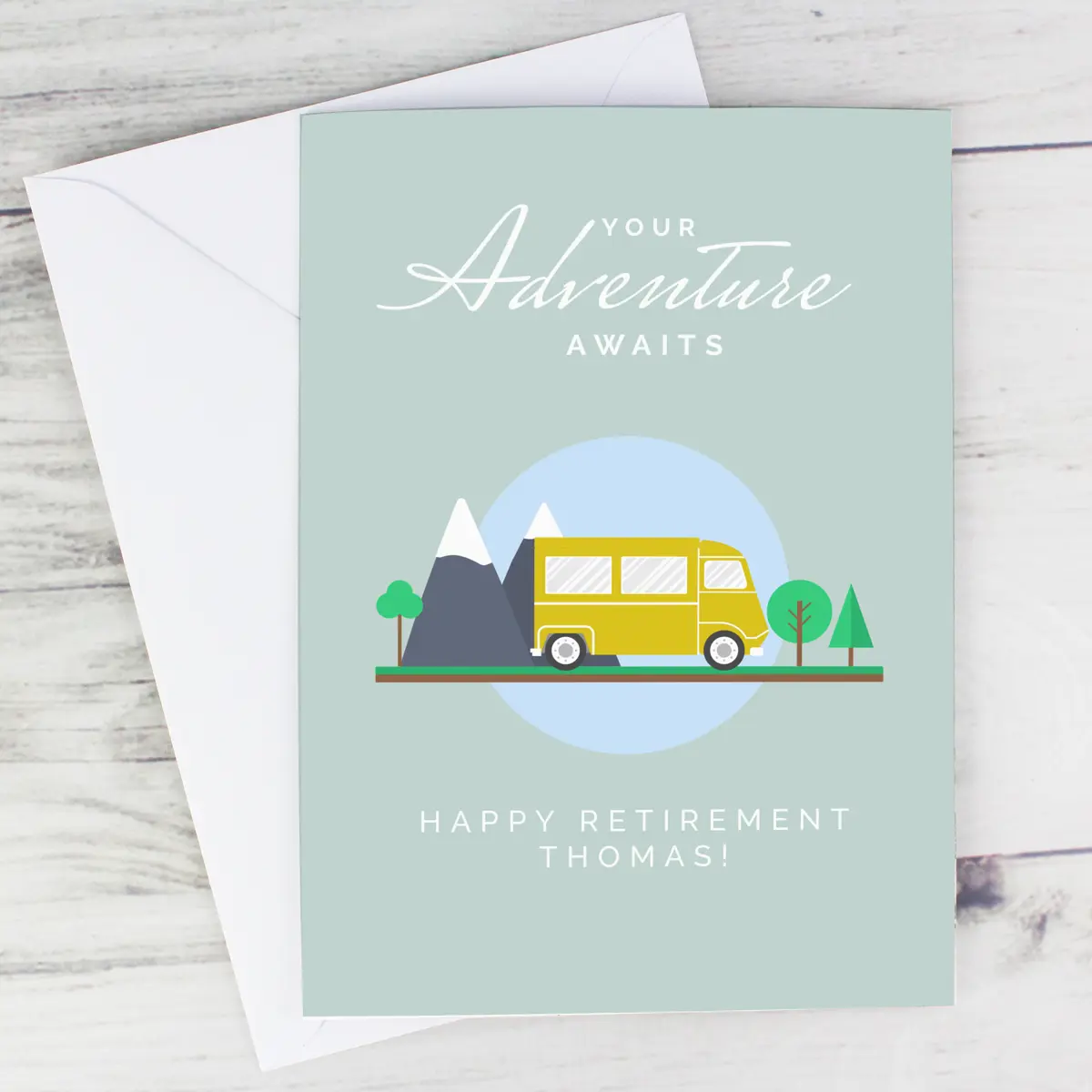 Celebrate a new chapter with this charming personalised adventure card, perfect for retirement, a new job, university or world travels. Featuring the inspiring fixed words “Your Adventure Awaits,” it is a thoughtful way to send best wishes as they set off on their exciting journey.