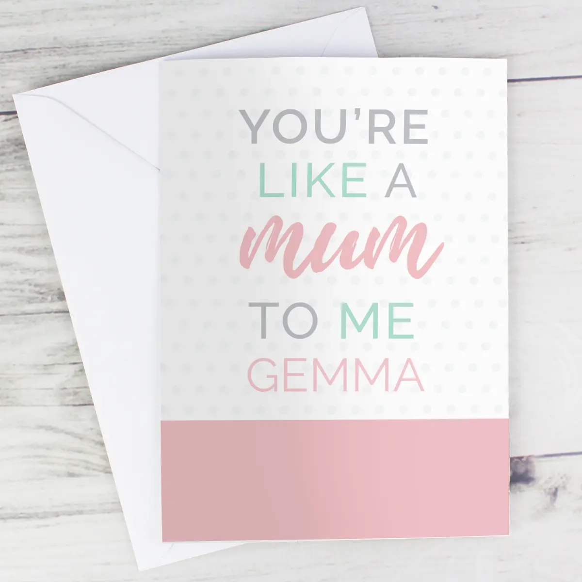 Show your gratitude to a step-parent, guardian, or inspirational mother figure with this touching personalised card. Featuring the fixed words “You’re like a mum to me,” it’s a beautiful way to let someone special know just how much they mean to you.