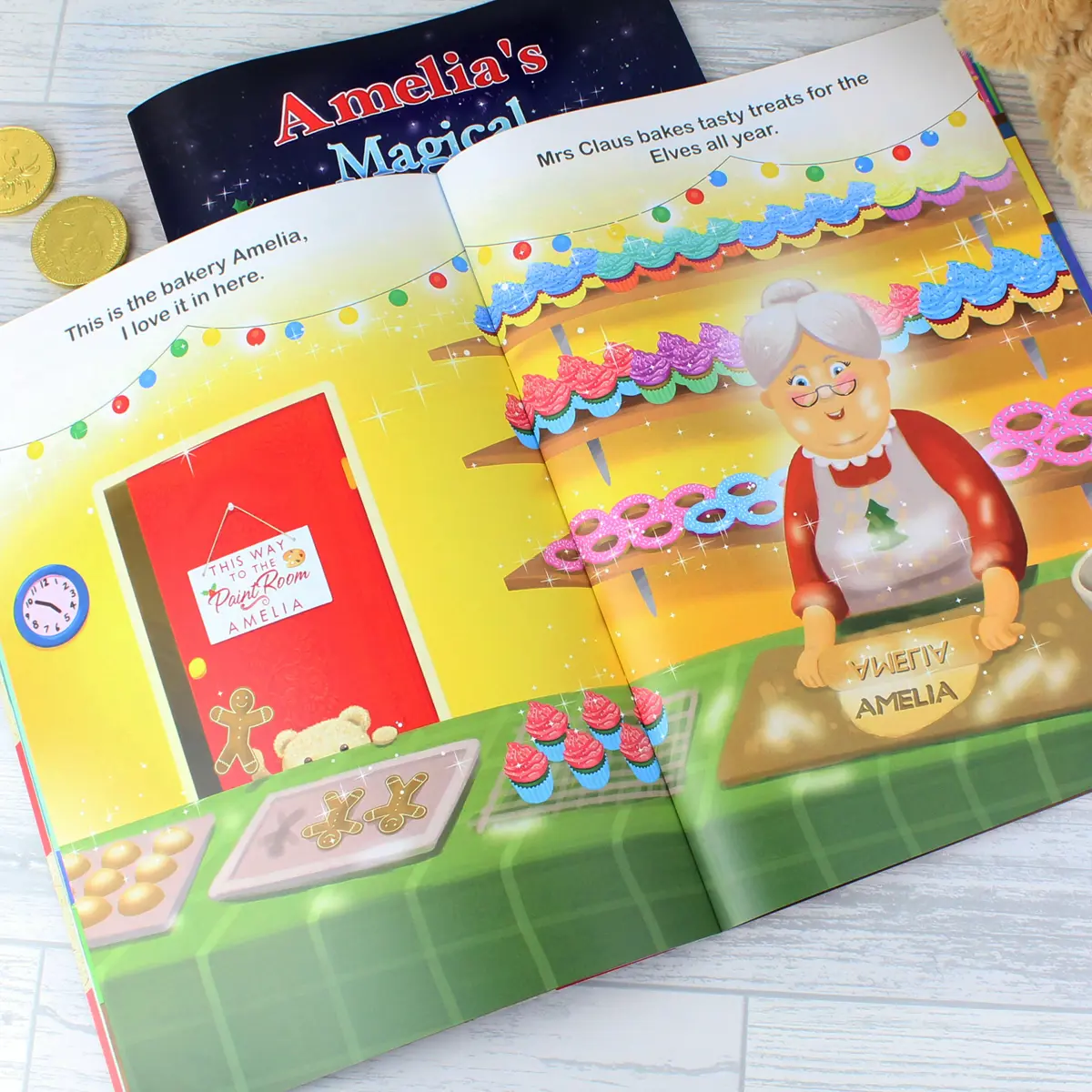 Bring the magic of Christmas to life with our Personalised Magical Christmas Adventure Story Book. Follow Jingles the Elf as he guides a mischievous teddy bear through Santa’s grotto, meeting busy elves, loyal reindeer, and even Mrs Claus along the way. With your chosen name appearing throughout the text and enchanting illustrations, this heart-warming tale makes the reader a true part of the adventure.