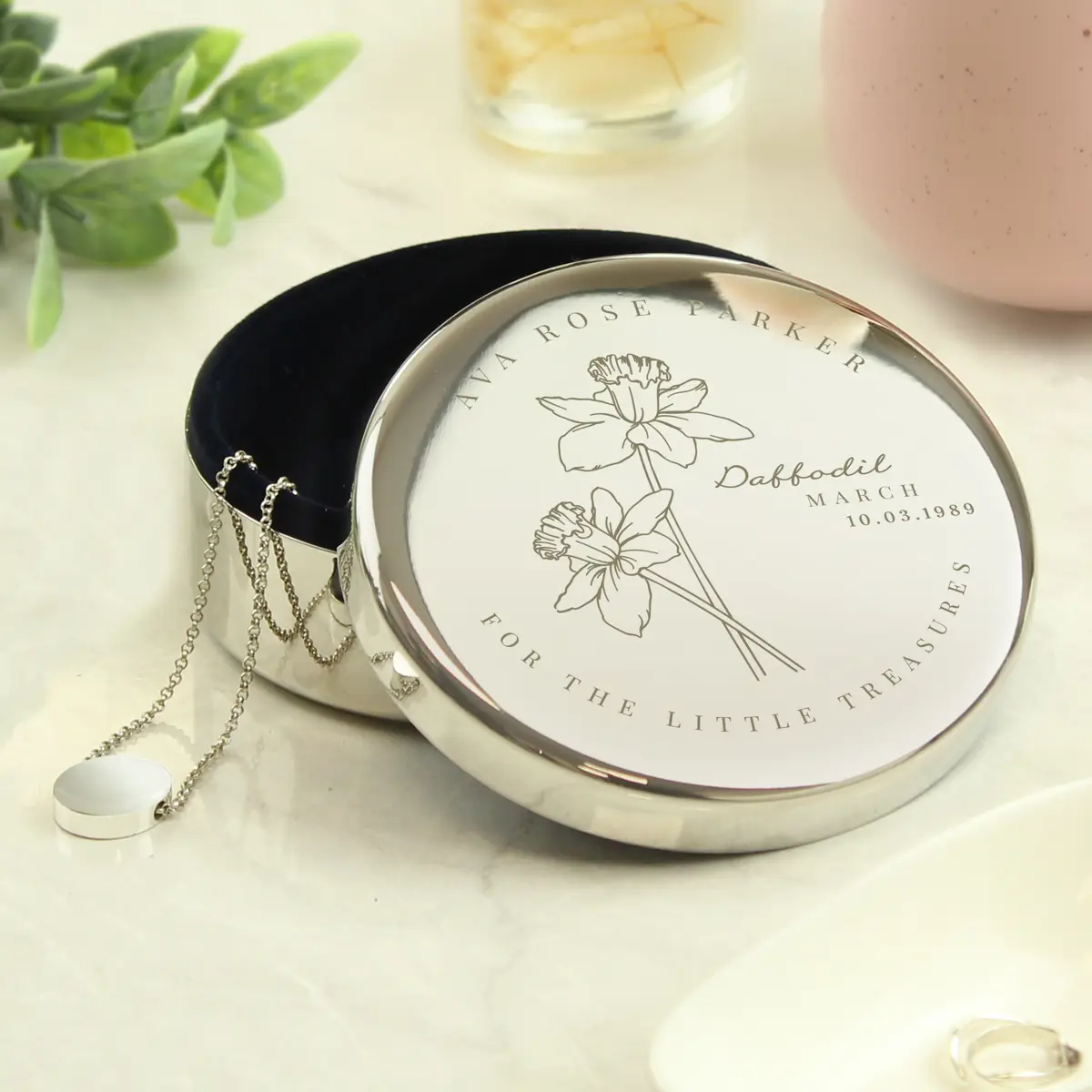 This March Birth flower round trinket box makes the perfect gift for any occasion.