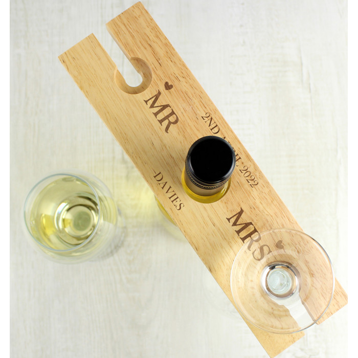 Personalised Married Couple Wine Glass & Bottle Holder Wedding Gift