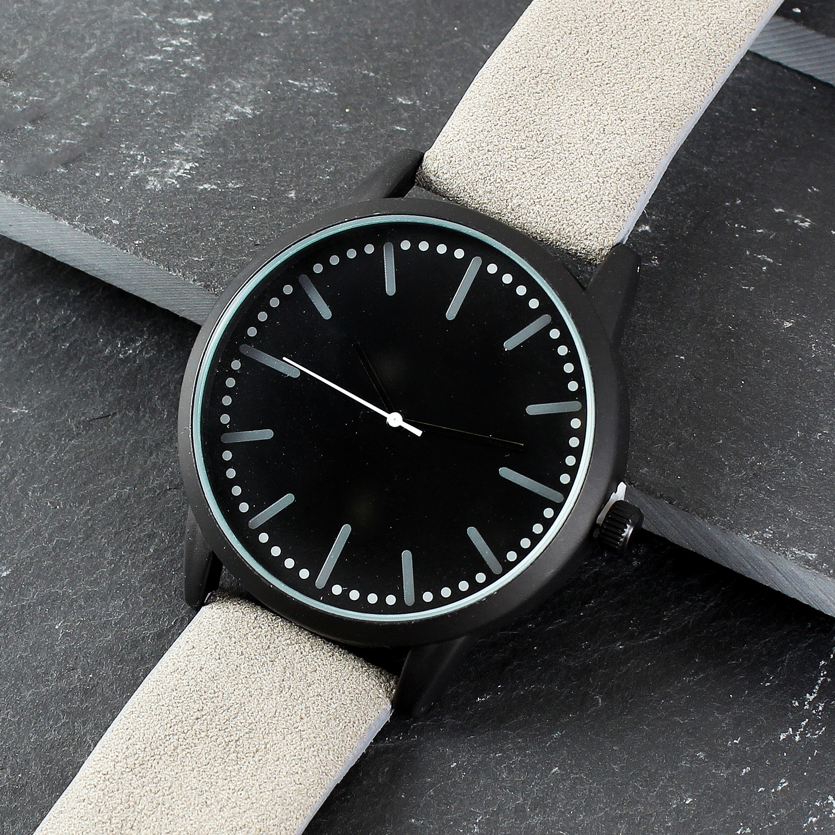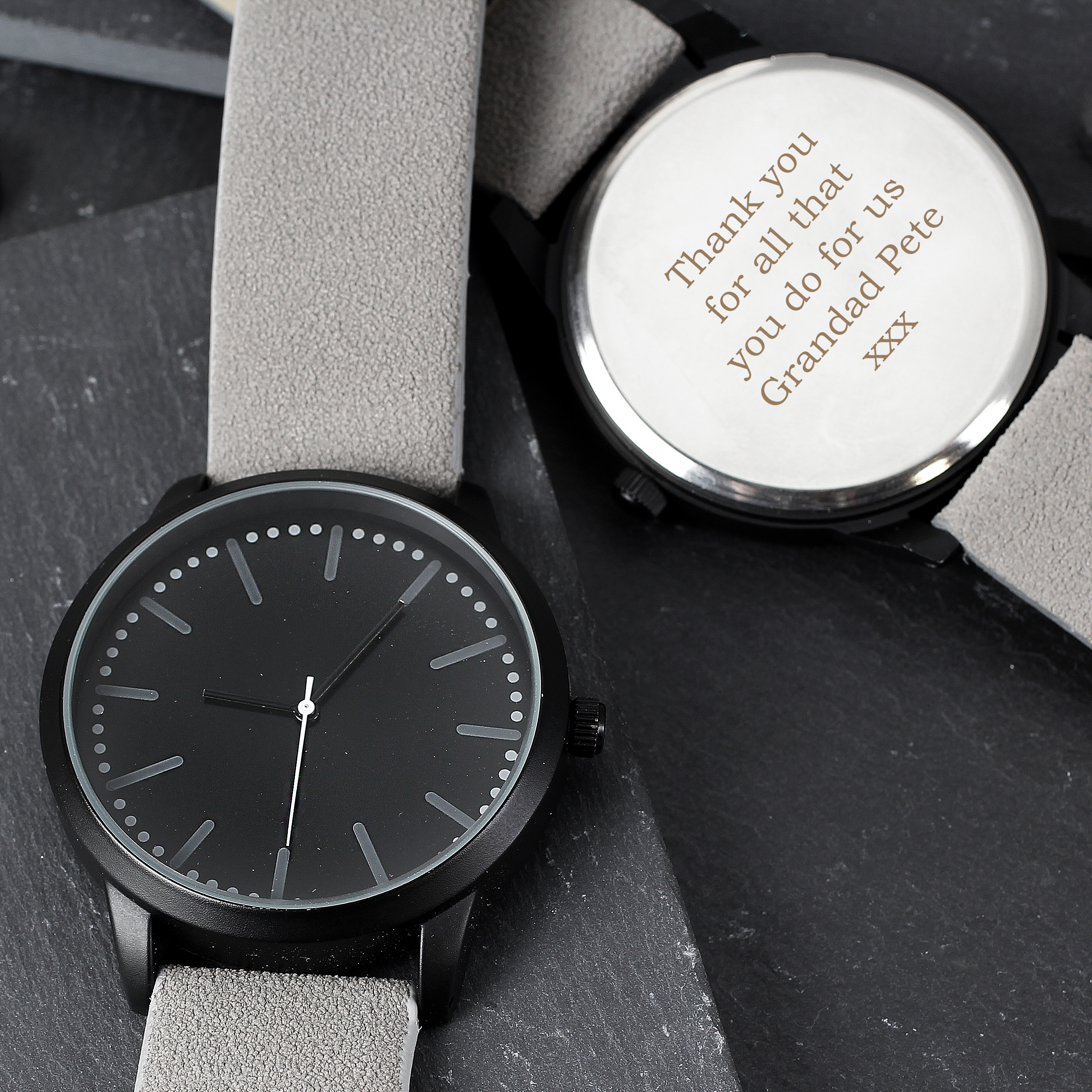 Personalised Mens Matte Black Watch with Grey Strap and Presentation Box