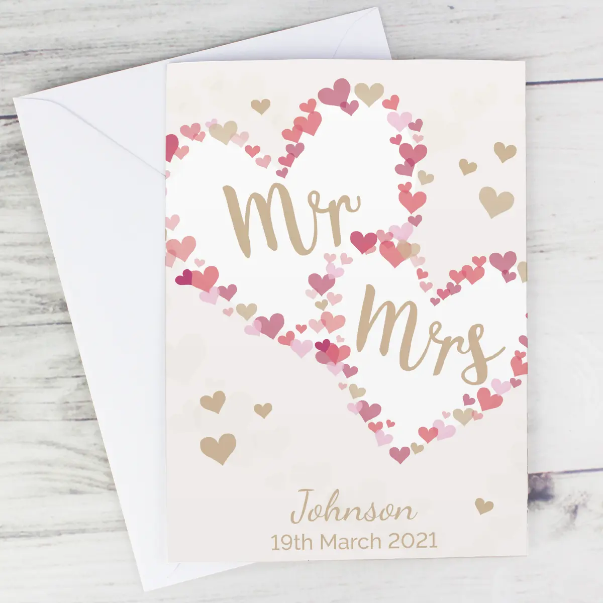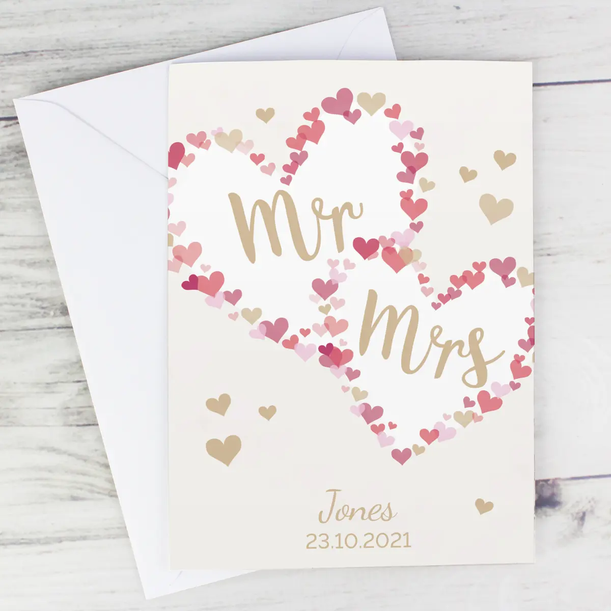 Personalised Mr & Mrs Confetti Hearts Wedding Card