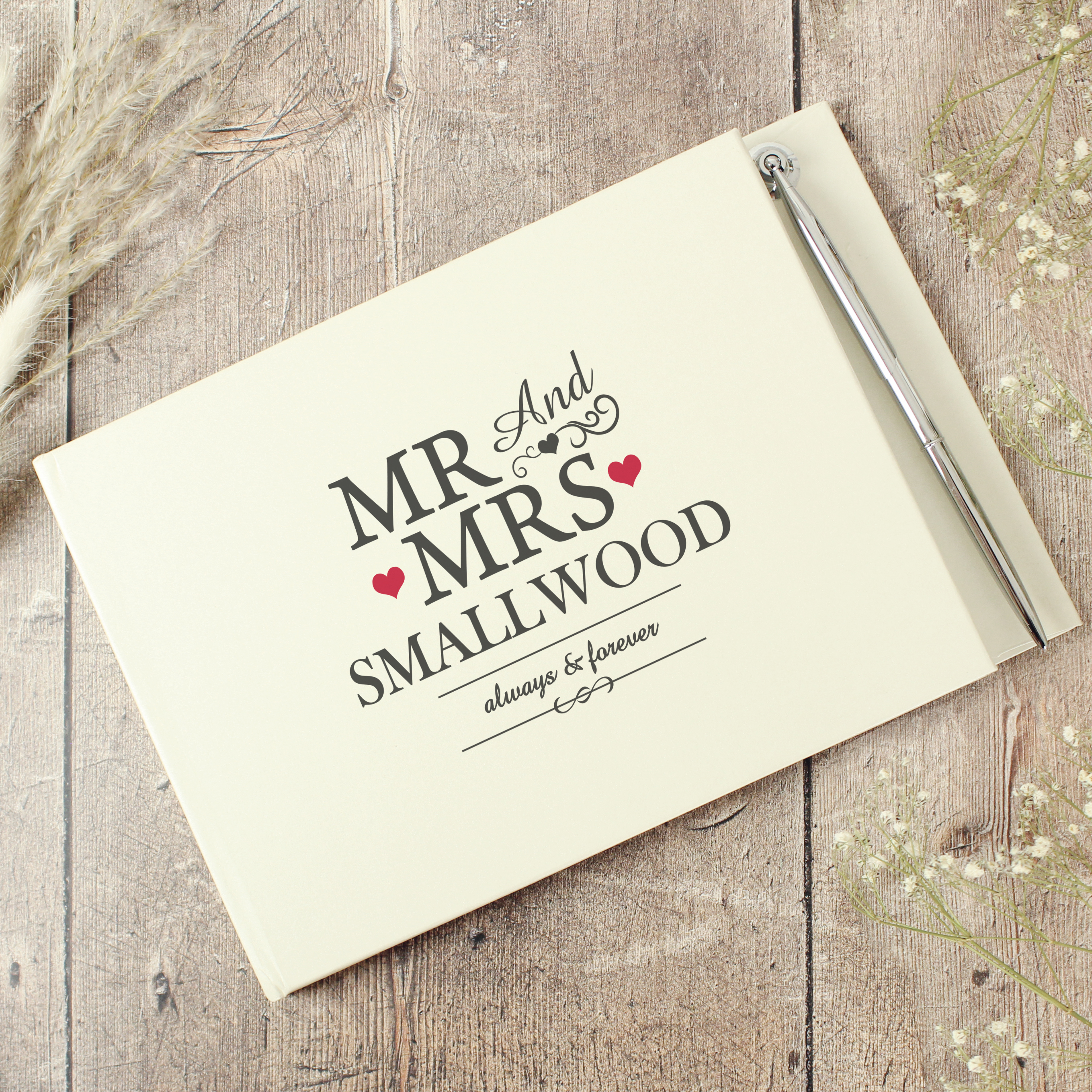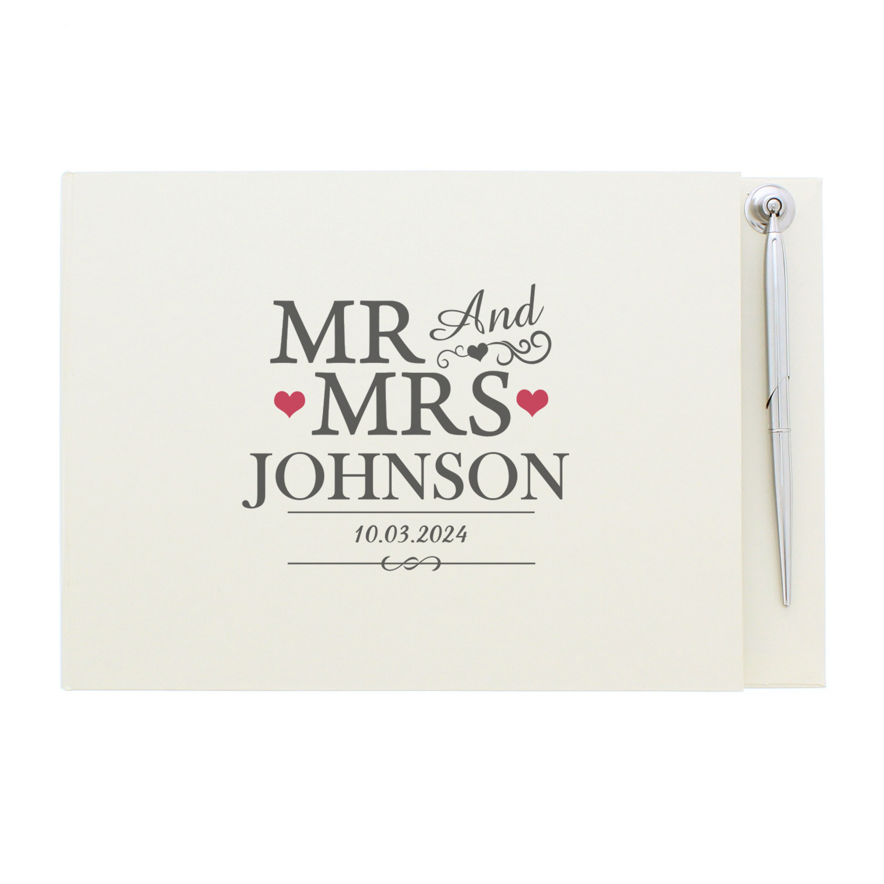 Personalised Mr & Mrs Hardback Guest Book & Pen