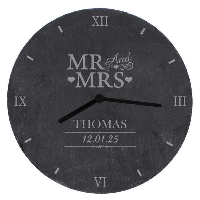 Personalised Mr & Mrs Slate Clock Wedding Gift