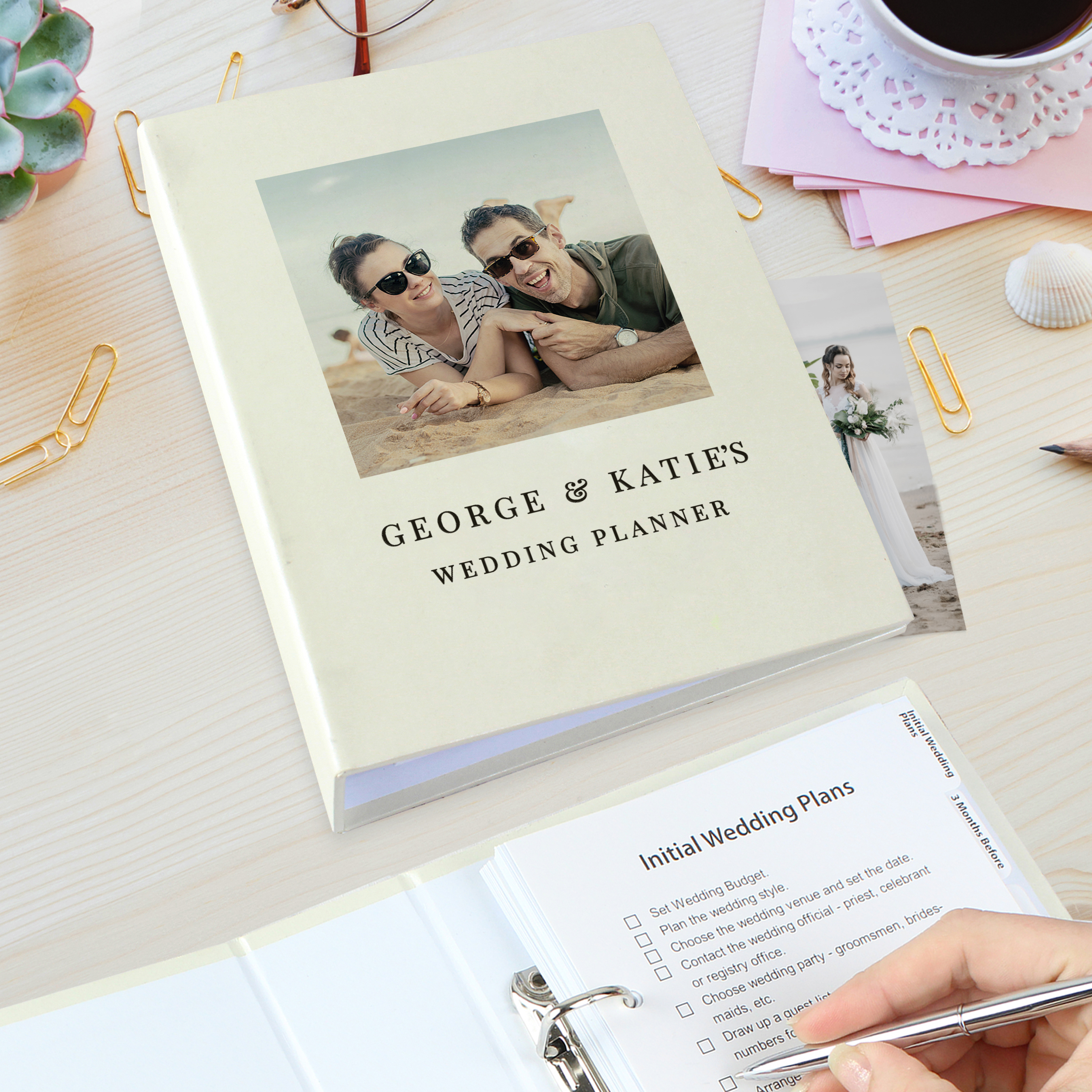This ring-bound wedding planner includes sections for the ceremony, stationery, contacts, Bride to be and post wedding.