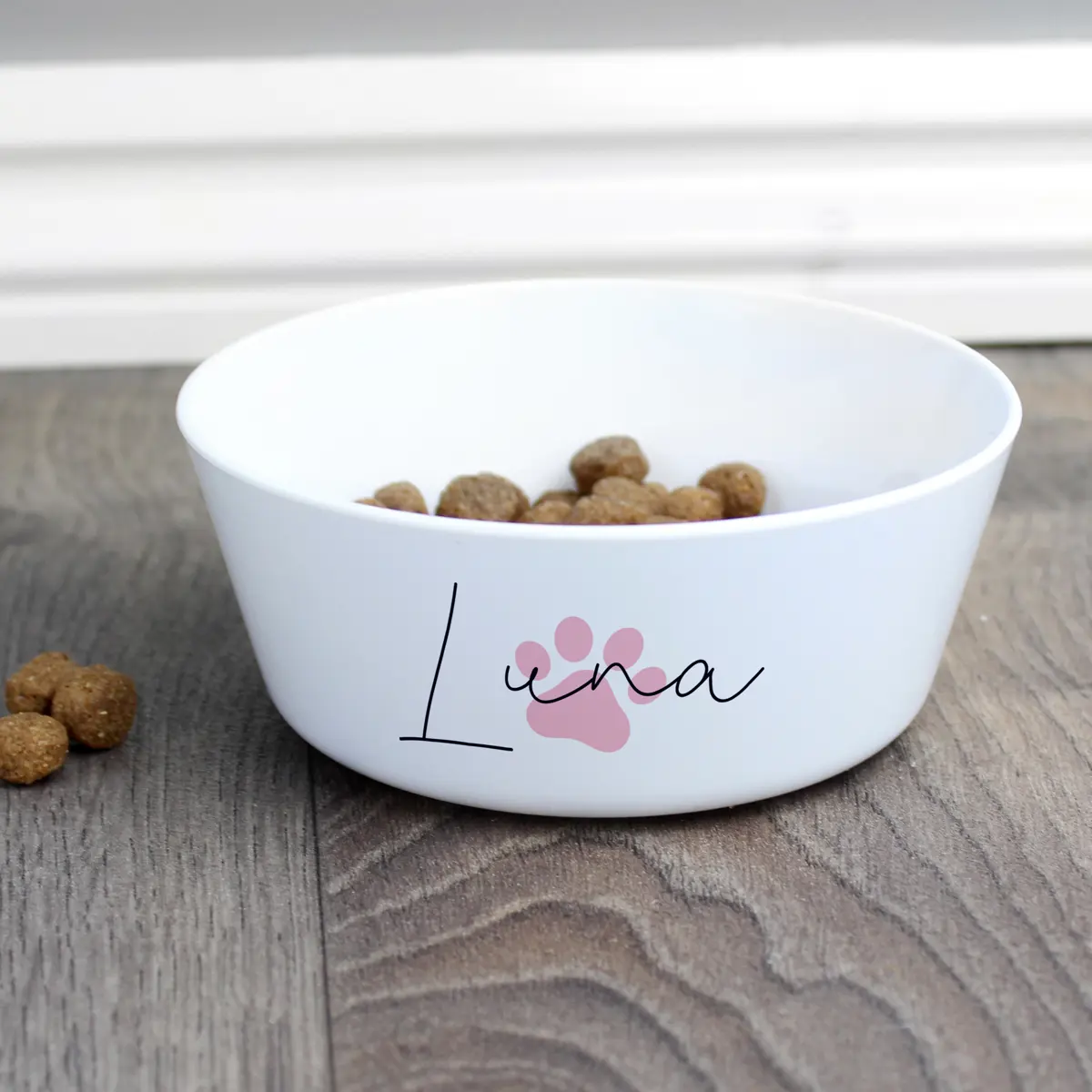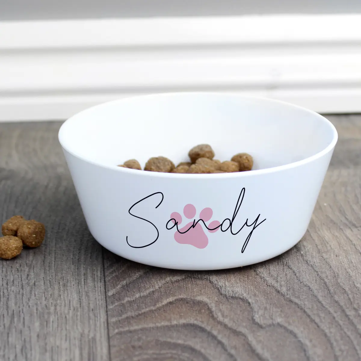 Personalised Pink Paw Print Plastic Cat Bowl