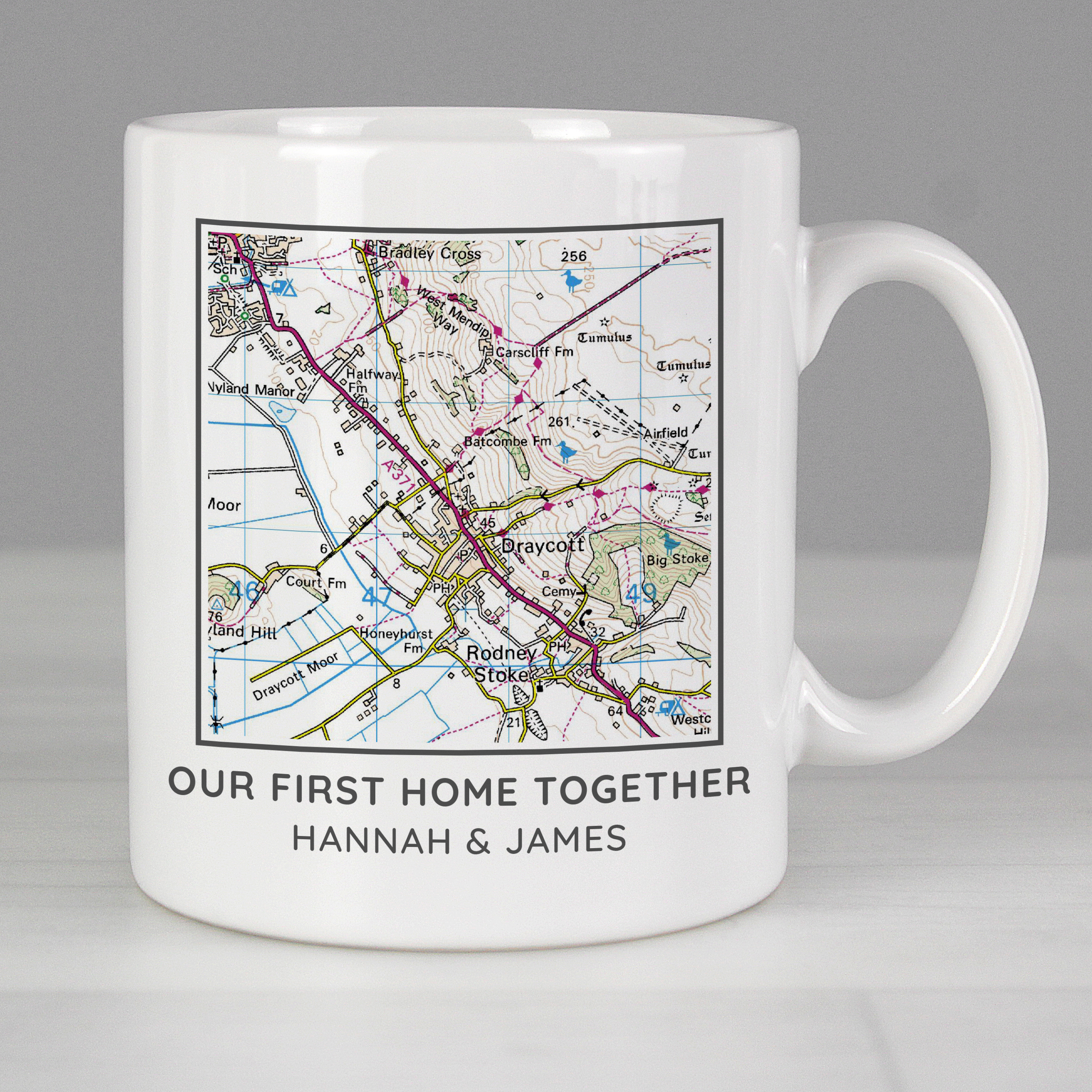Celebrate a New Home or a Recent Wedding with this Personalised Present Day Map Message Mug. Personalise this Present Day Edition map with any postcode of your choice. The mug will then display the local area surrounding your chosen postcode. You can then personalise the front with up to 2 lines, 25 characters per line. The back can be personalised with up to 4 lines, 20 characters per line.