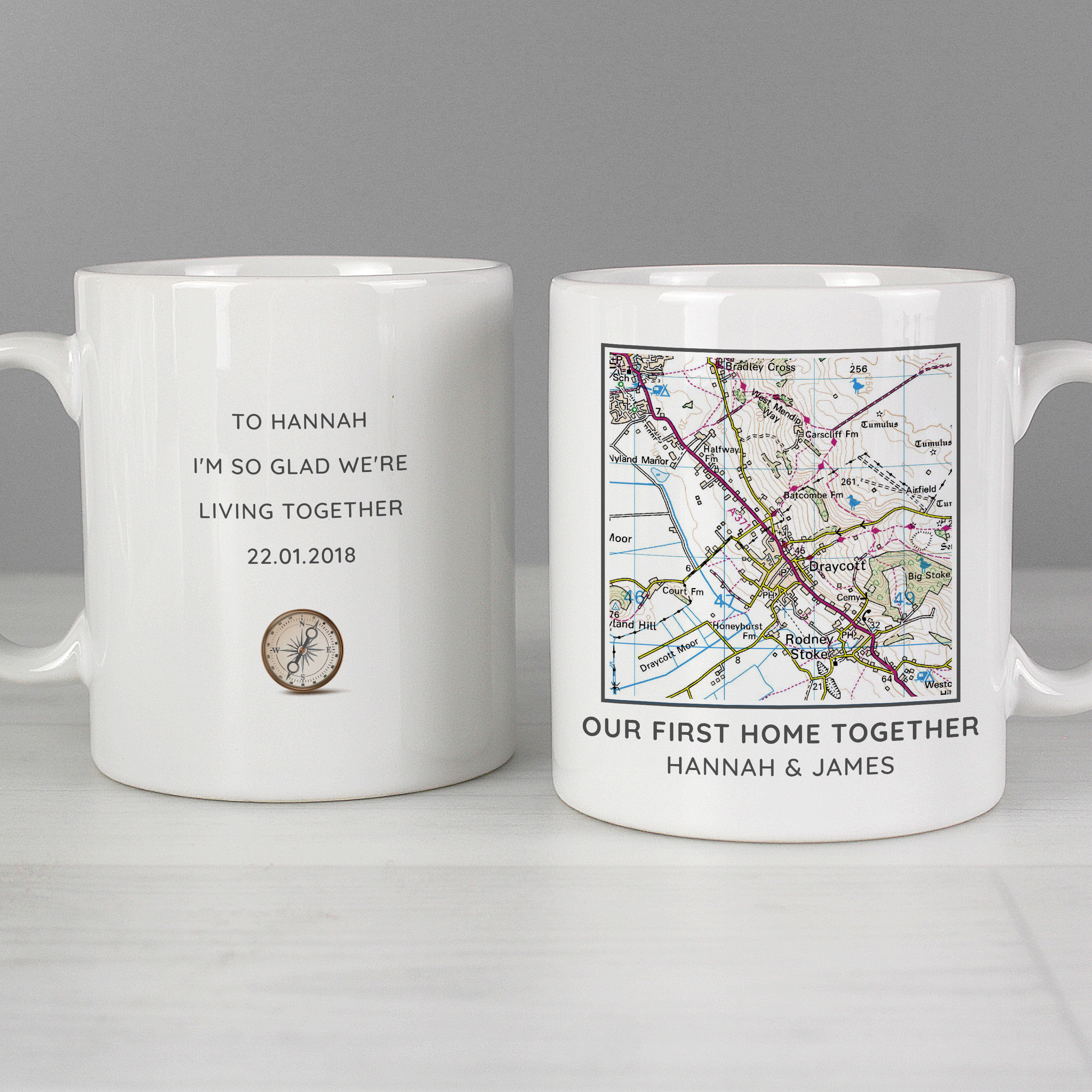 Personalised Present Day Map Compass Mug
