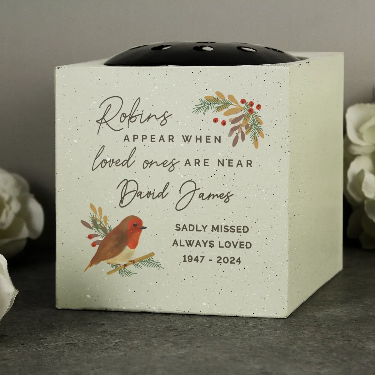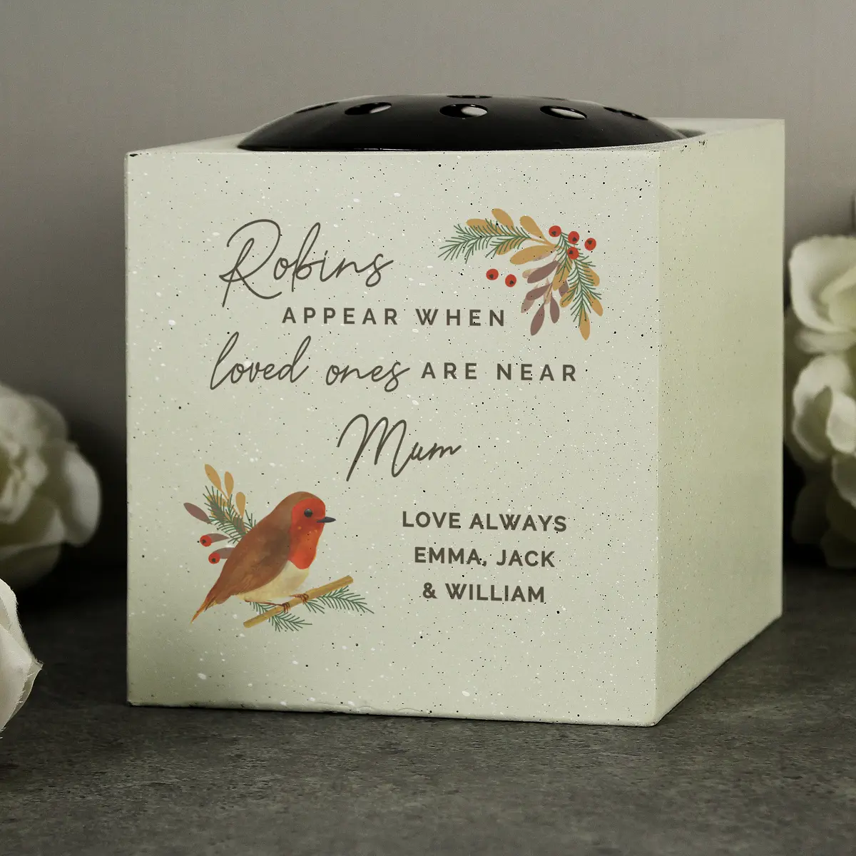 This Personalised Robin Memorial Vase is the most perfect way to remember a loved one.