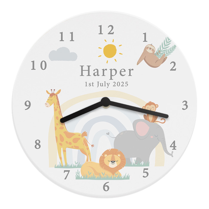 Our Personalised Safari Animals Wooden Nursery Clock is a charming and meaningful addition to any child's nursery or bedroom.