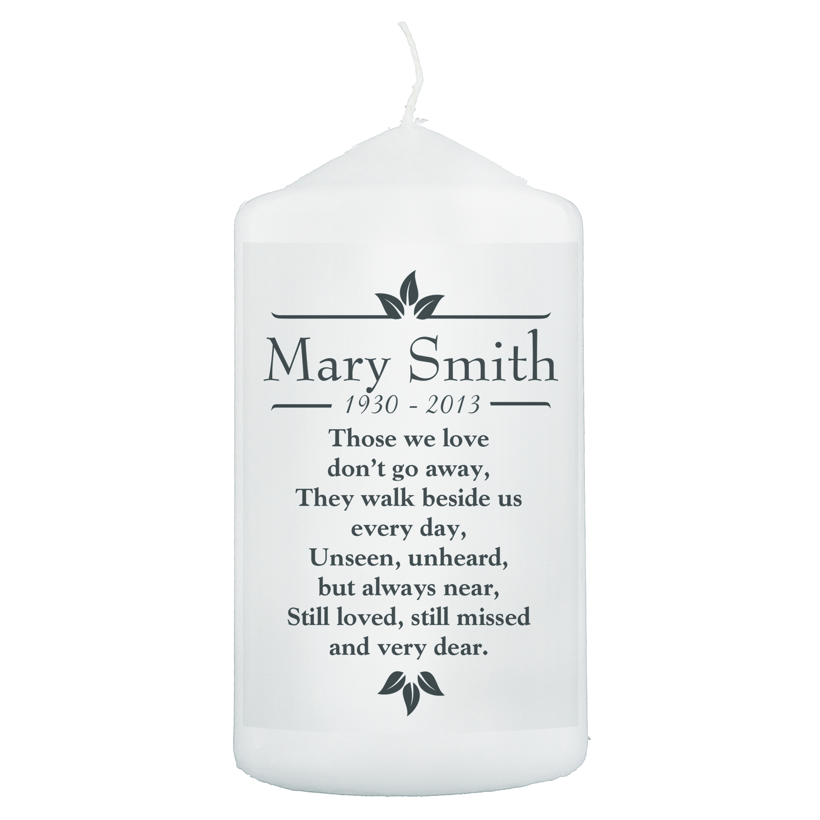 This Personalised Sentiments 'Those We Love' Pillar Candle is an ideal way to honour the memory of a loved one.