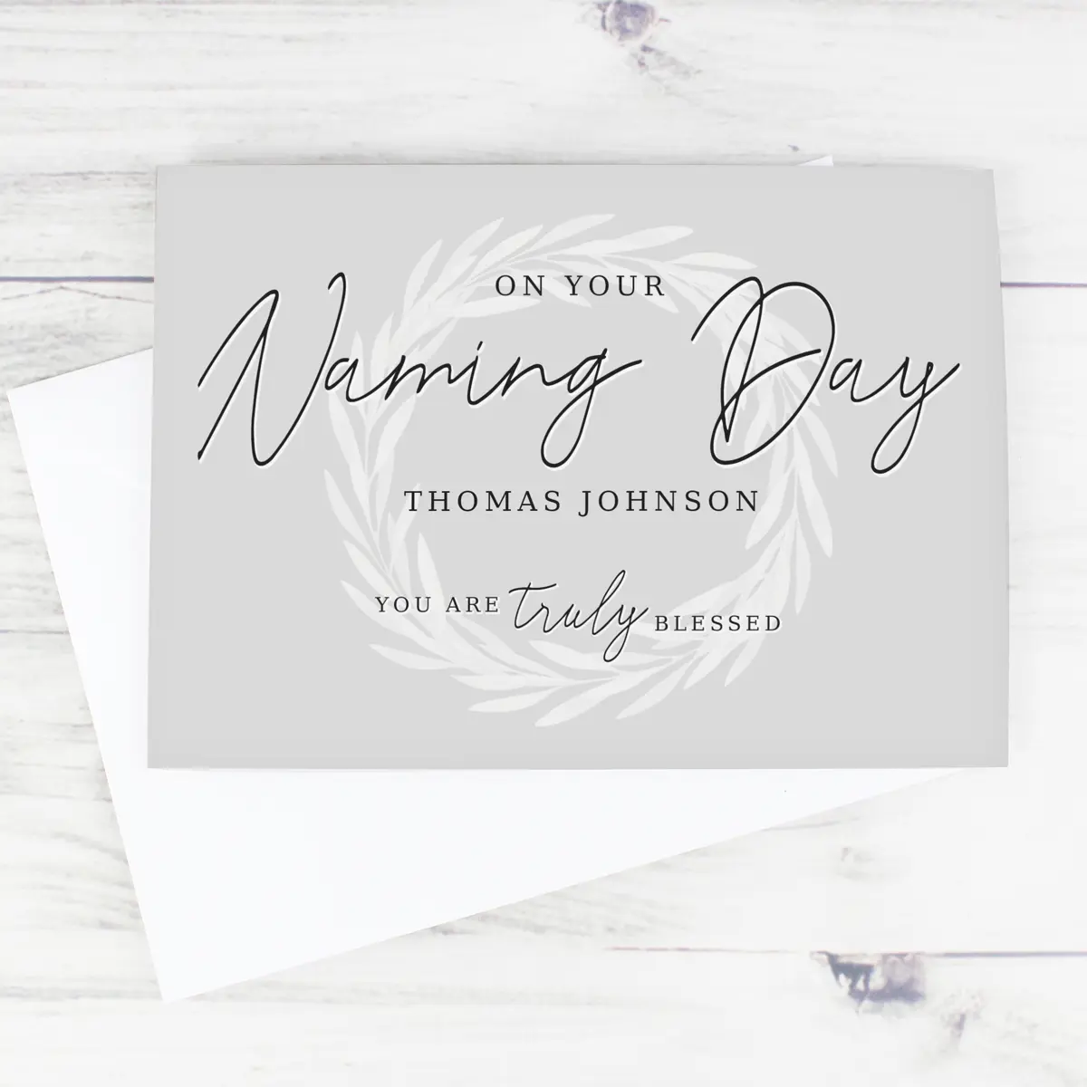 This beautiful Personalised Truly Blessed Naming Day Card is a lovely way to celebrate a special Baby Naming Day. Thoughtful and gentle in design, it’s a meaningful keepsake to mark such an important milestone in a child’s life.