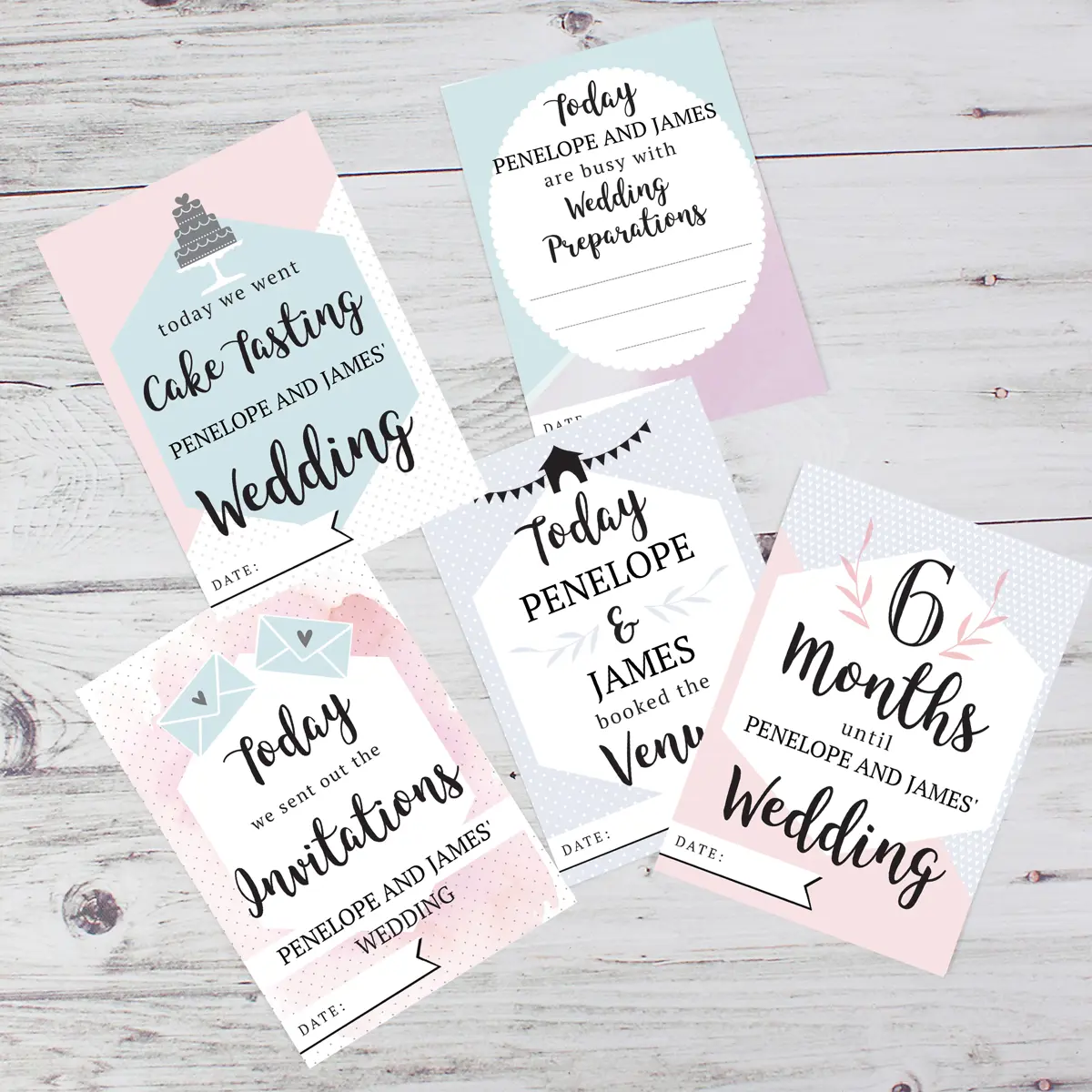 Celebrate the journey to your big day with these beautifully personalised Wedding Cards for Milestone Moments. Designed to help you capture all the special steps along the way, from venue visits to cake tastings, each card includes a handy notes section on the back to keep you organised and inspired. A thoughtful engagement gift, these cards are a lovely way to treasure every memory leading up to “I do.”
