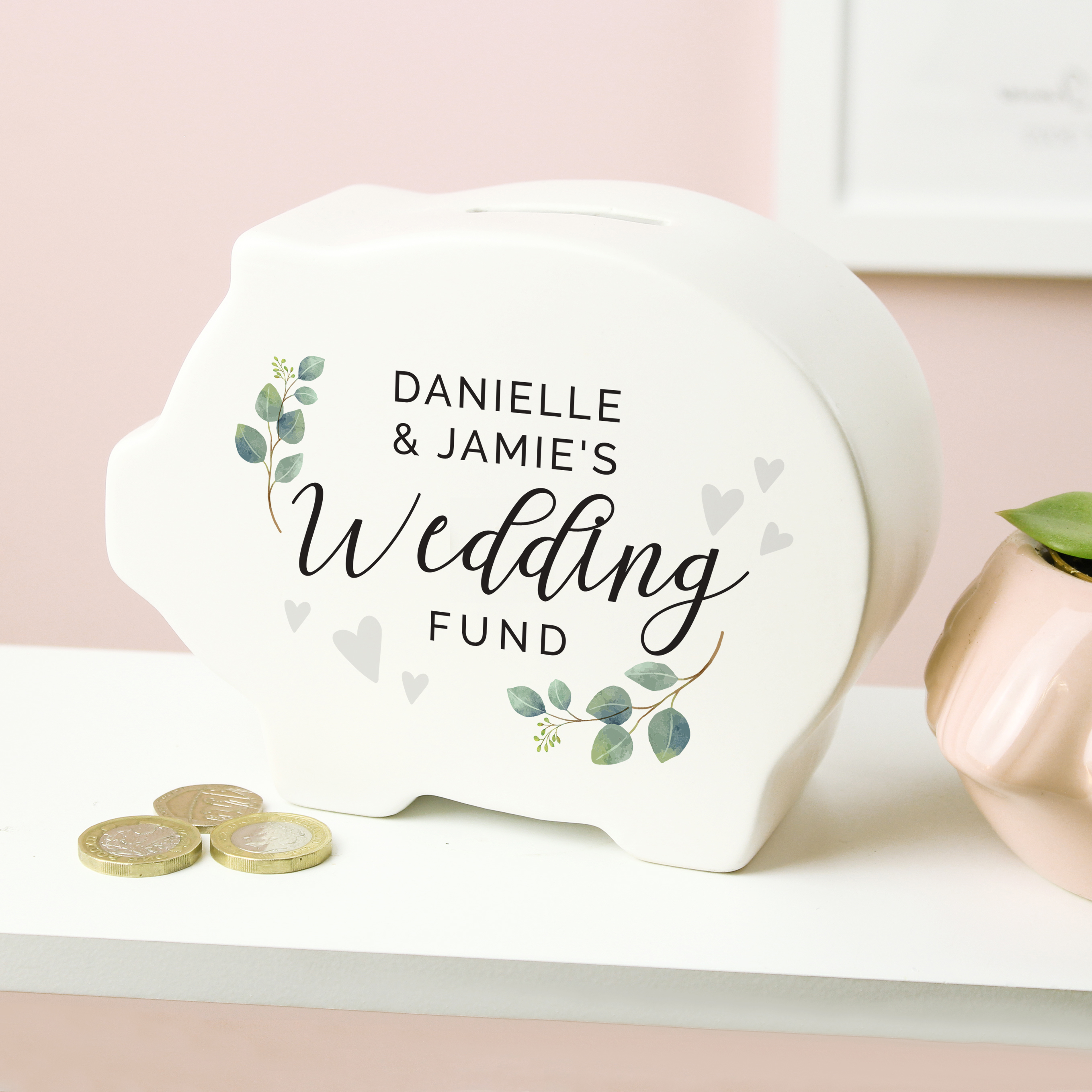 This personalised piggy bank is perfect for saving those pennies for your wedding.