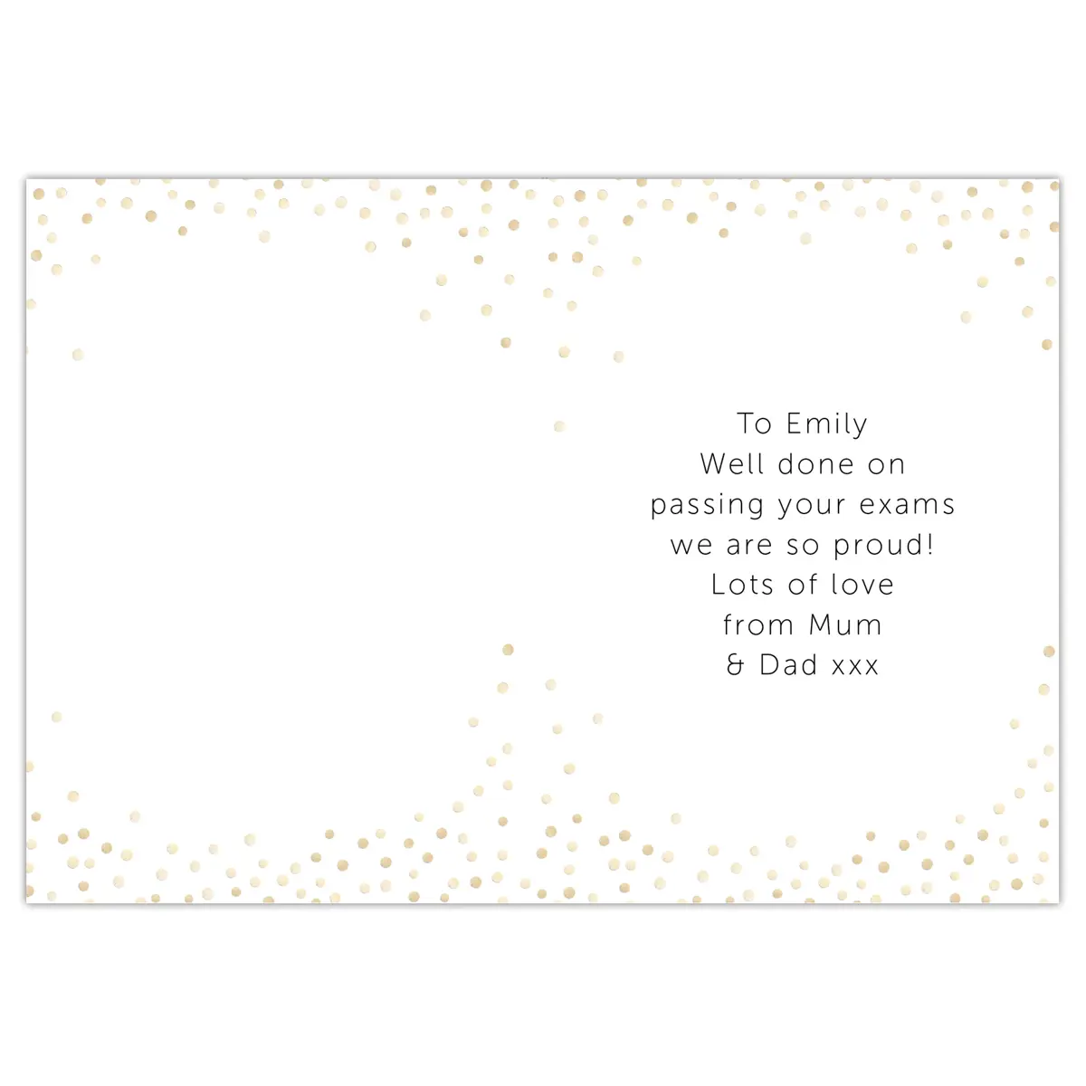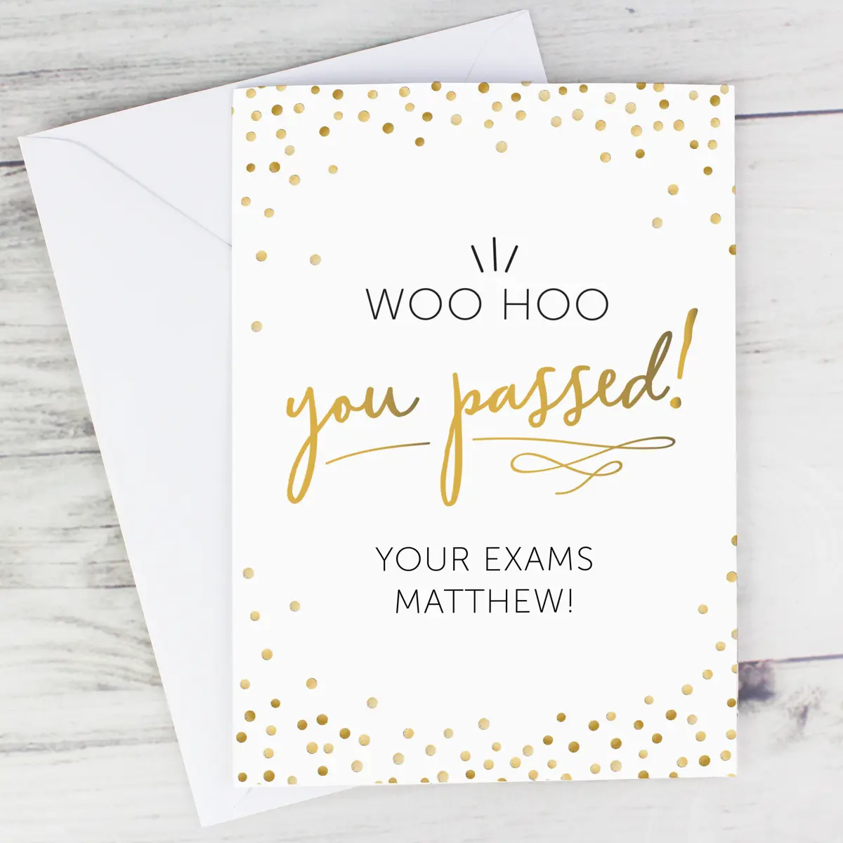 Celebrate their success in style with this bright and modern personalised card. Featuring the cheerful fixed words “Woo Hoo” and “you passed,” it is the perfect way to share your excitement and say well done, whether for a driving test, exam or any special achievement.