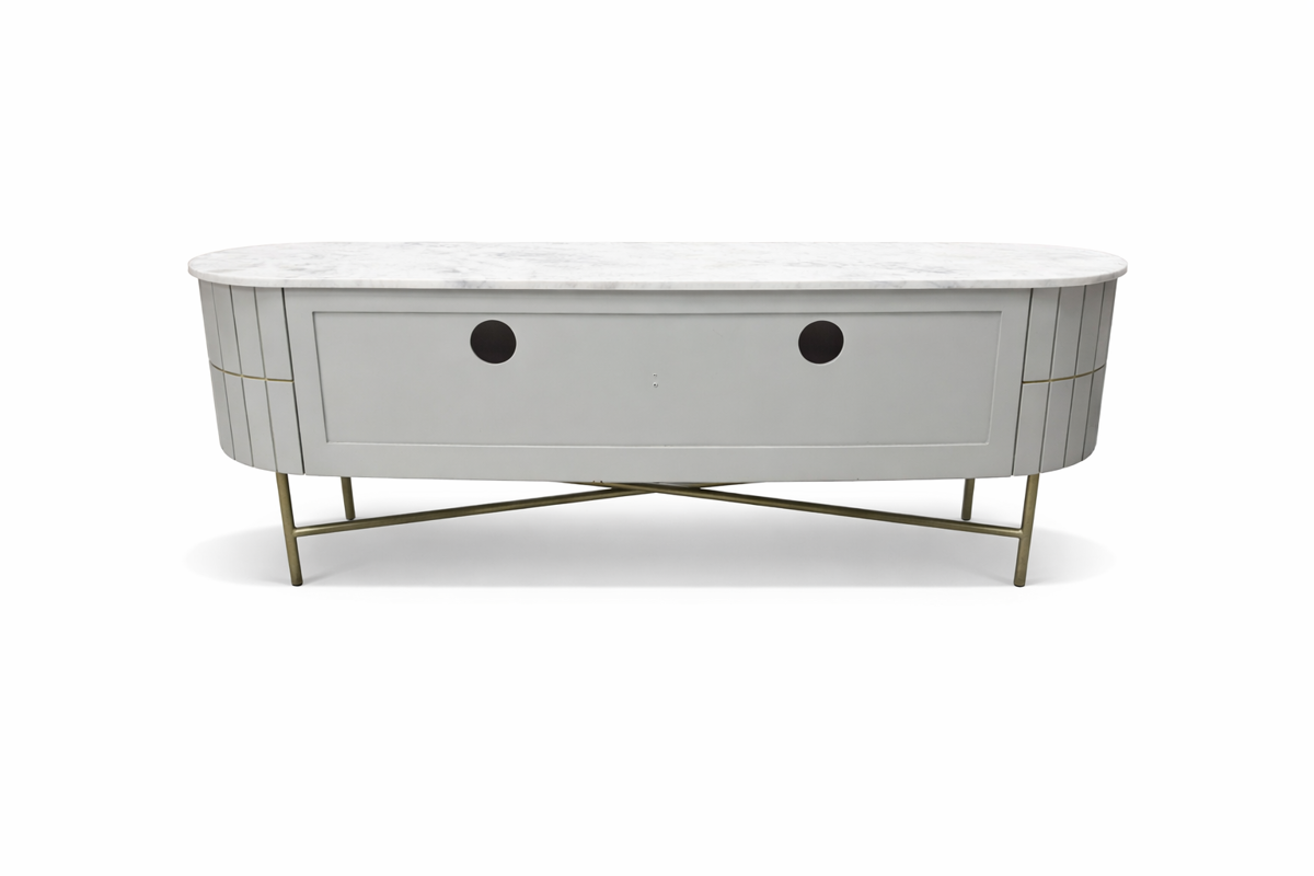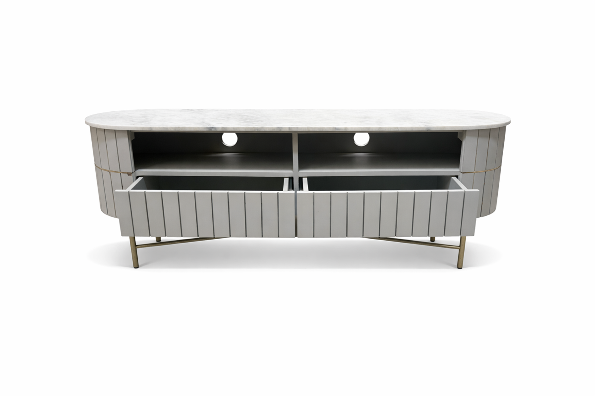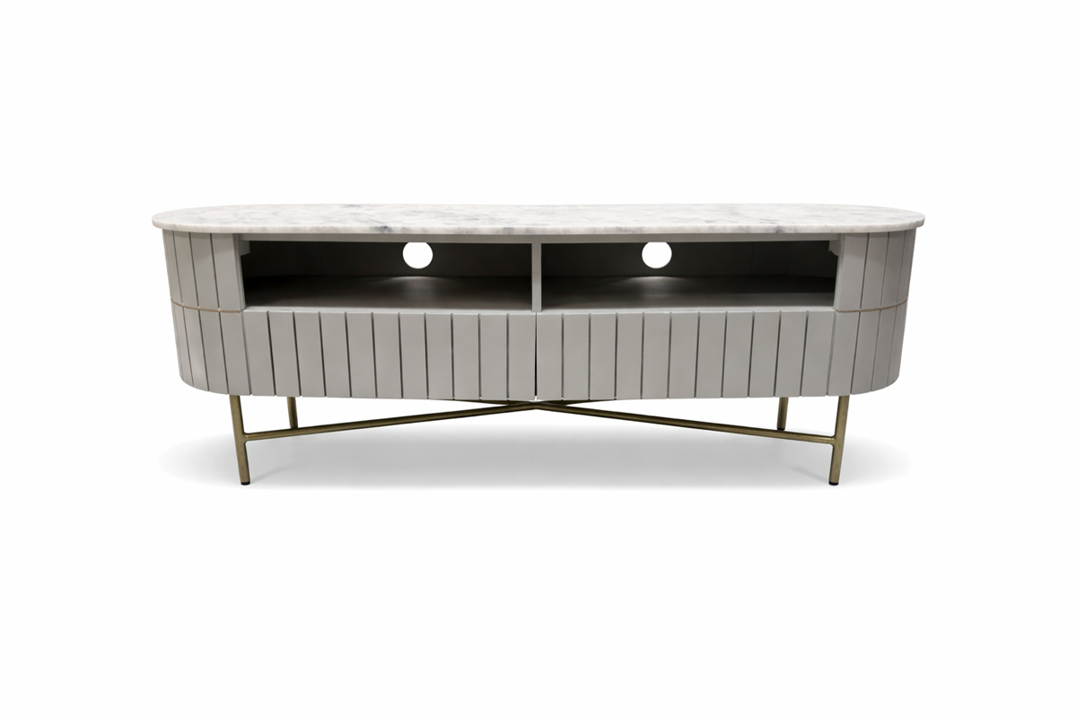 Piano Fluted Grey Mango Wood & Marble Curved TV Unit
