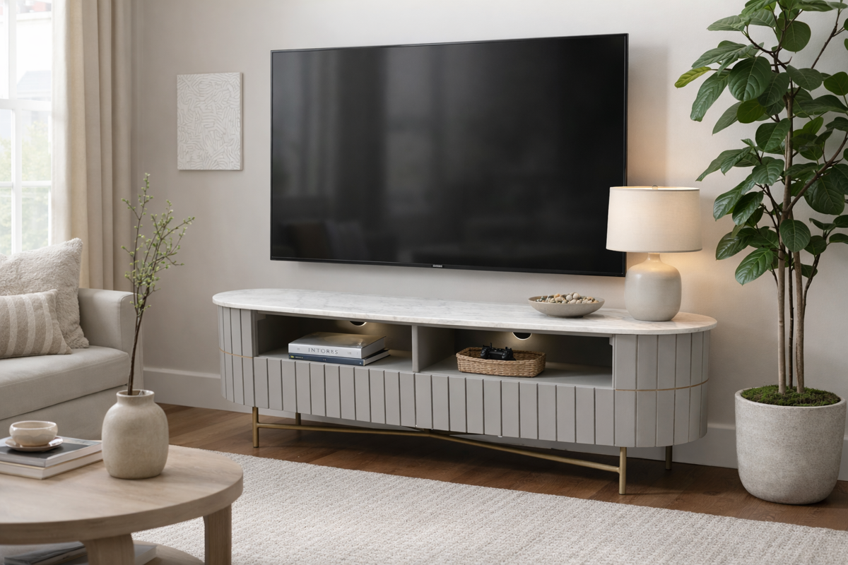 Elevate your living space with the Piano Fluted Mango Wood & Marble TV Unit. Combining natural materials with timeless design, this elegant piece features beautifully fluted mango wood detailing and a luxurious marble top — creating a sophisticated focal point for any modern home.
