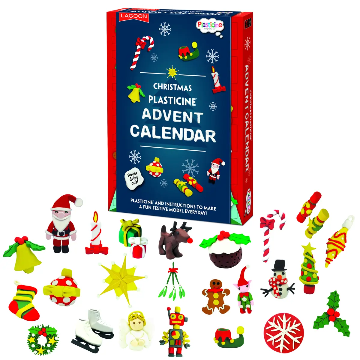 • Plasticine can be blended and moulded into 24 festive objects