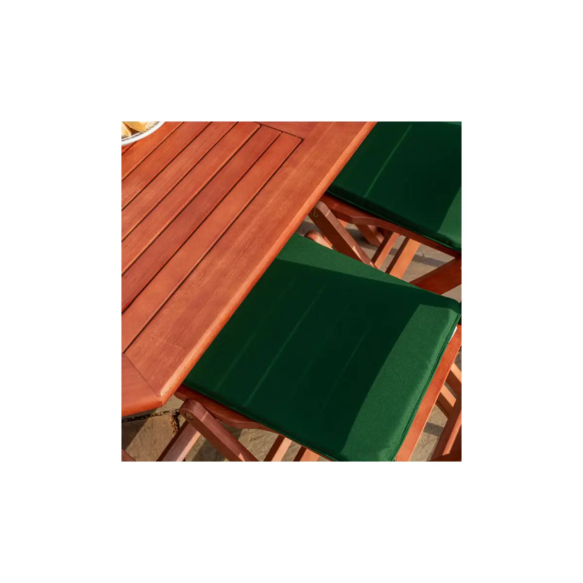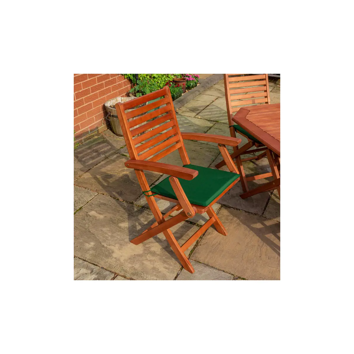 The set comes with six luxurious holly green cushions, adding a pop of colour and extra comfort to your dining experience. These cushions are designed to fit perfectly and enhance the overall aesthetic of the set.