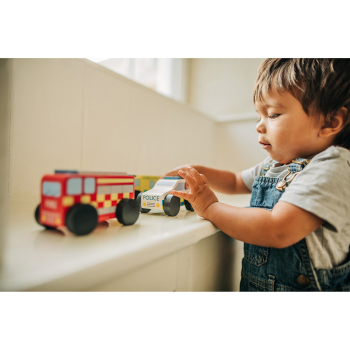 A little wooden Police Car, perfect for imaginative play, and great for teaching kids all about the emergency service. The chunky wooden vehicle is perfect for little hands, and will help to develop movement & coordination.