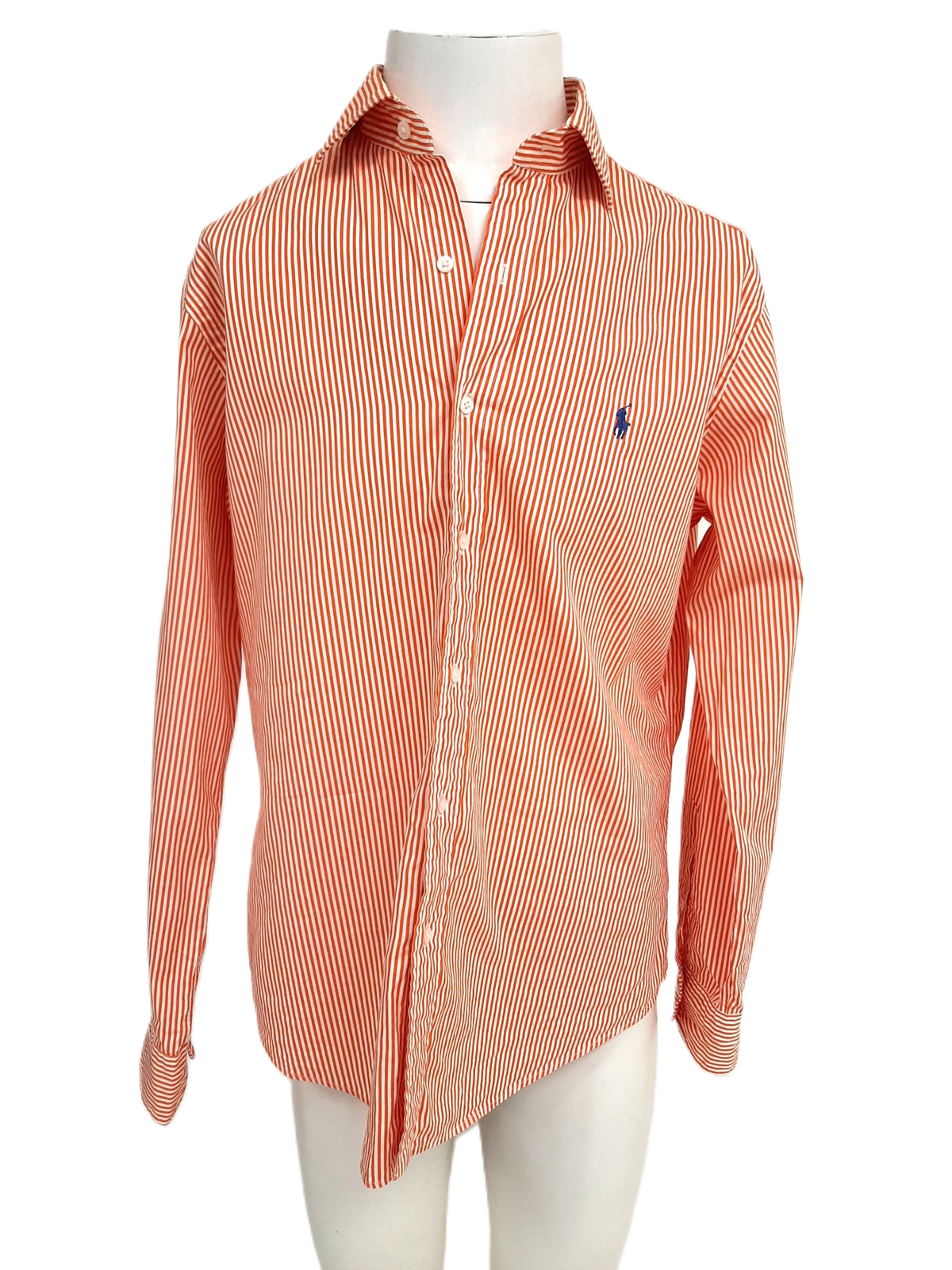 POLO RALPH LAUREN Men's Orange Striped Shirt – Regent Custom Fit – Size L – Pre-Loved Condition