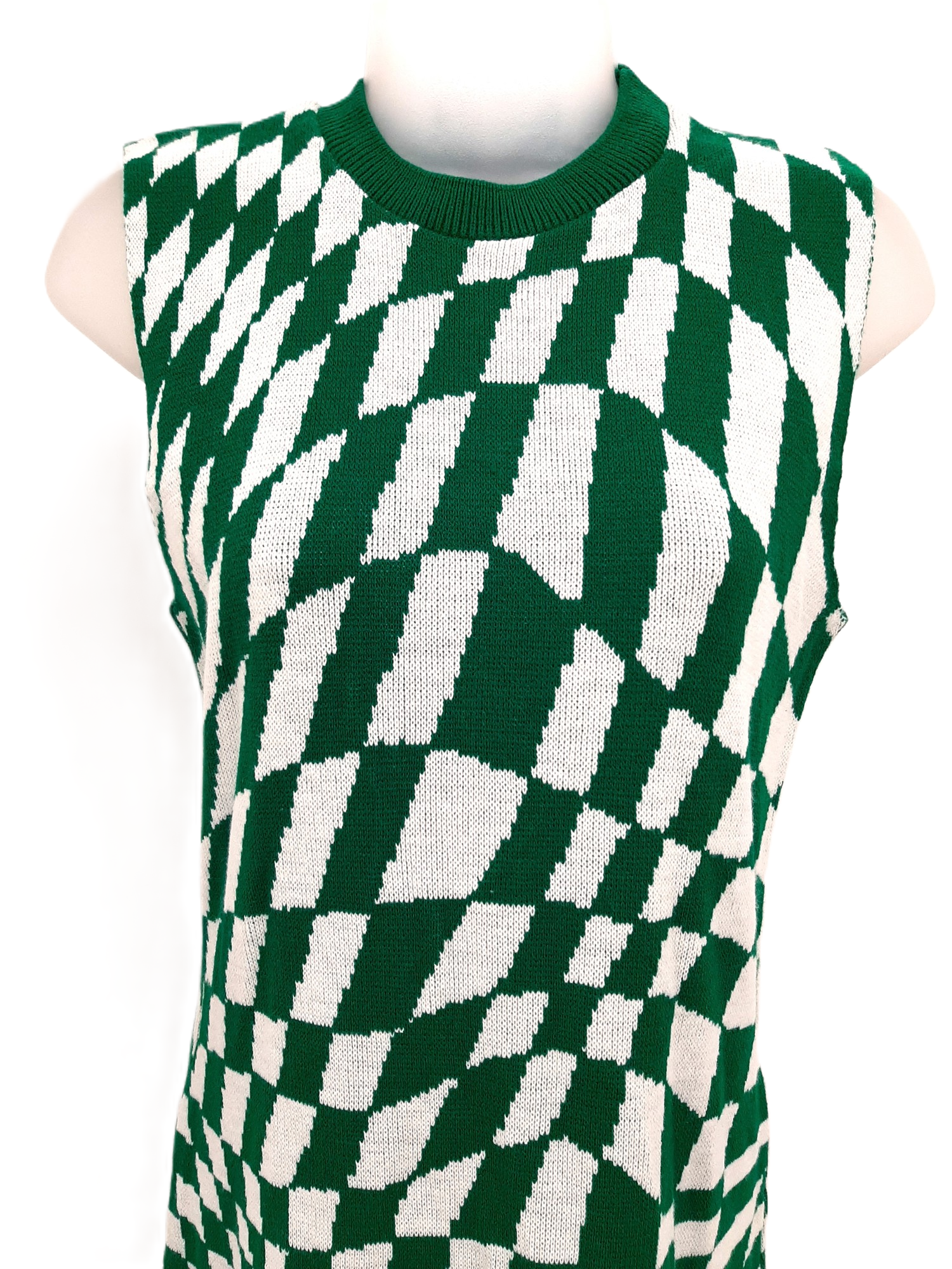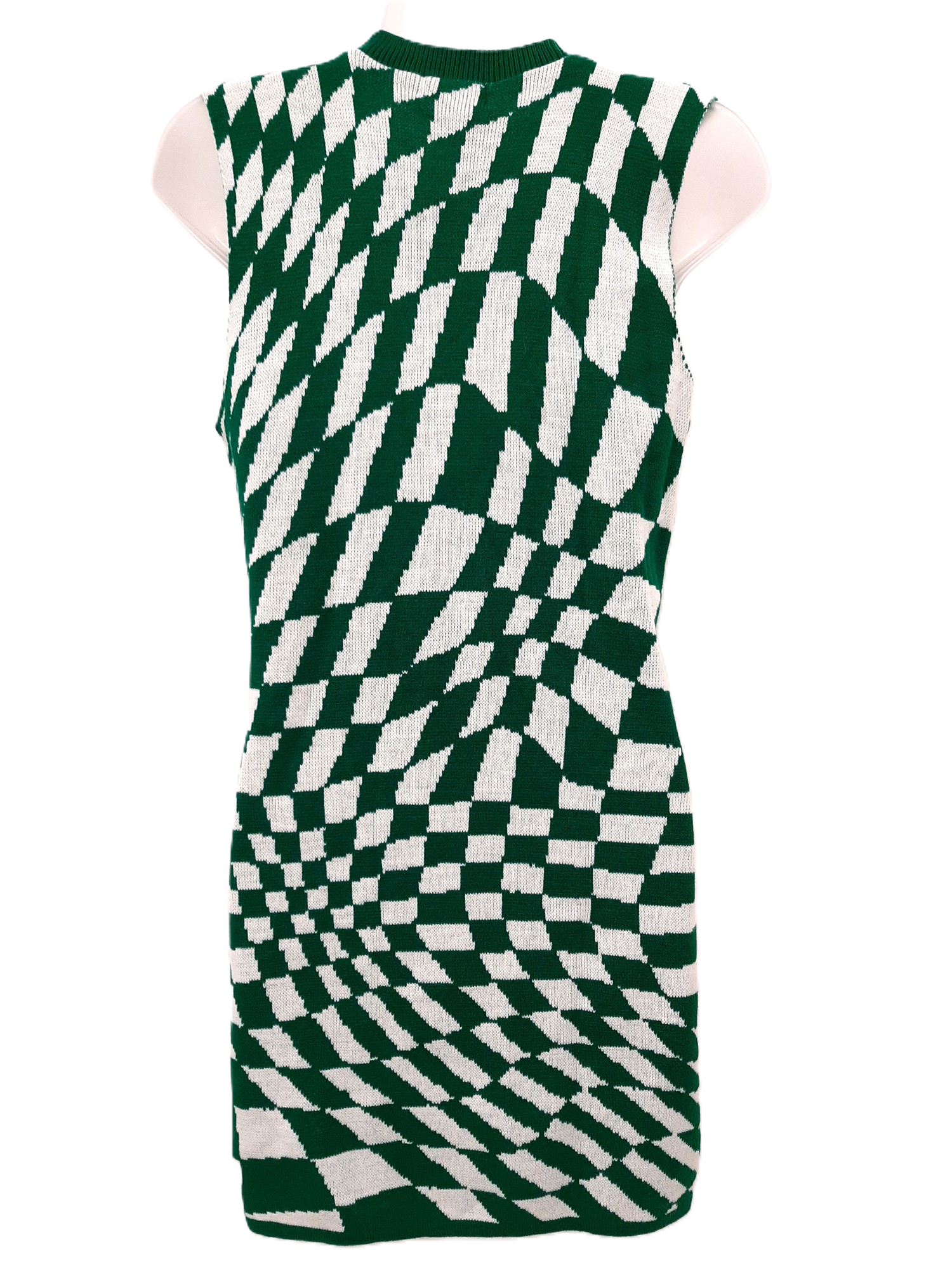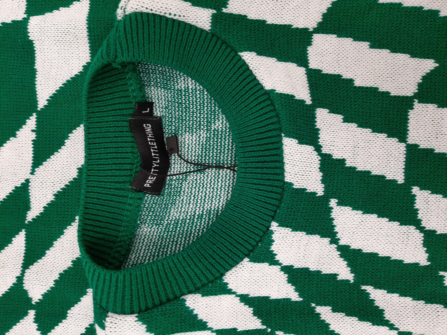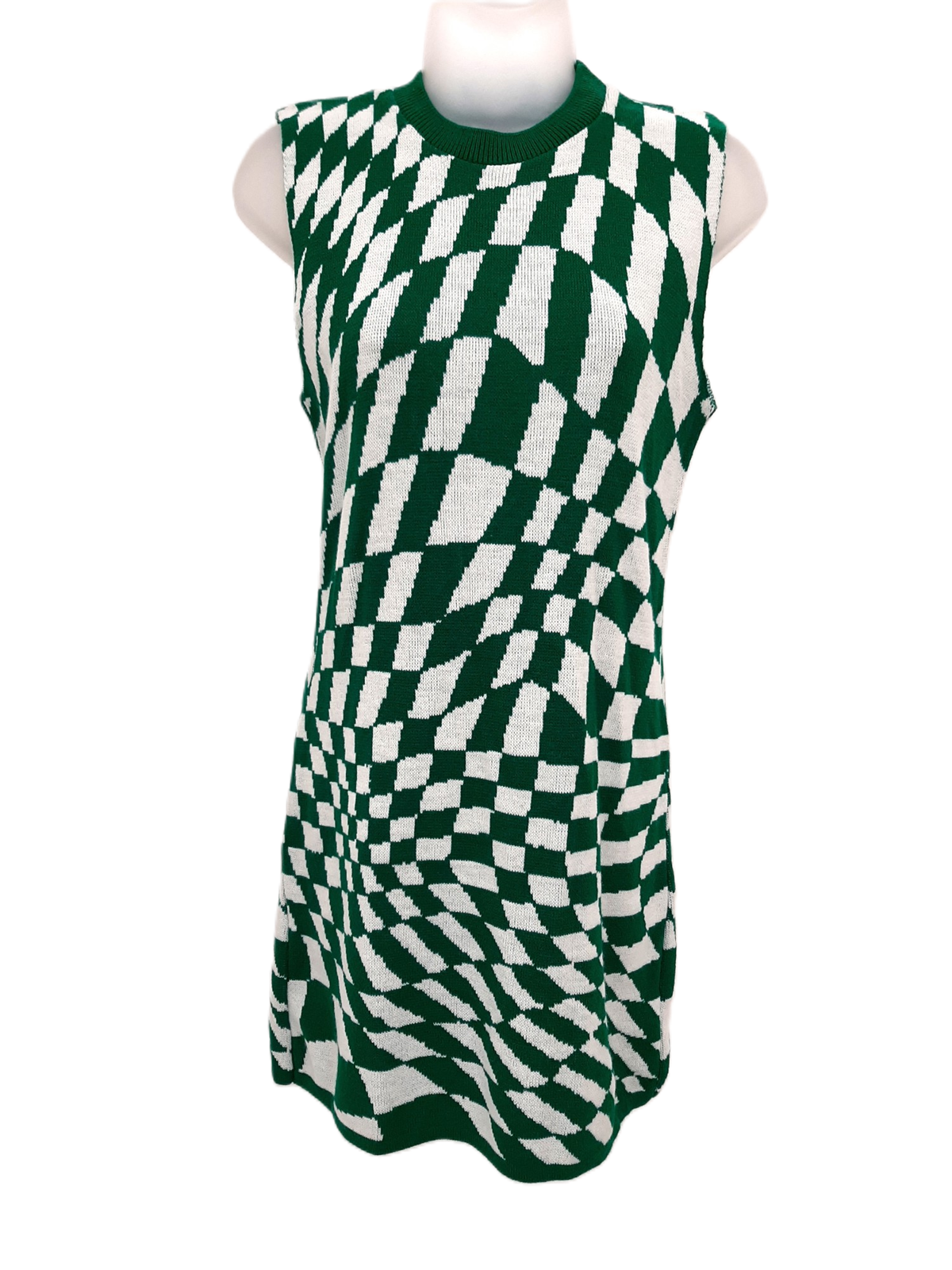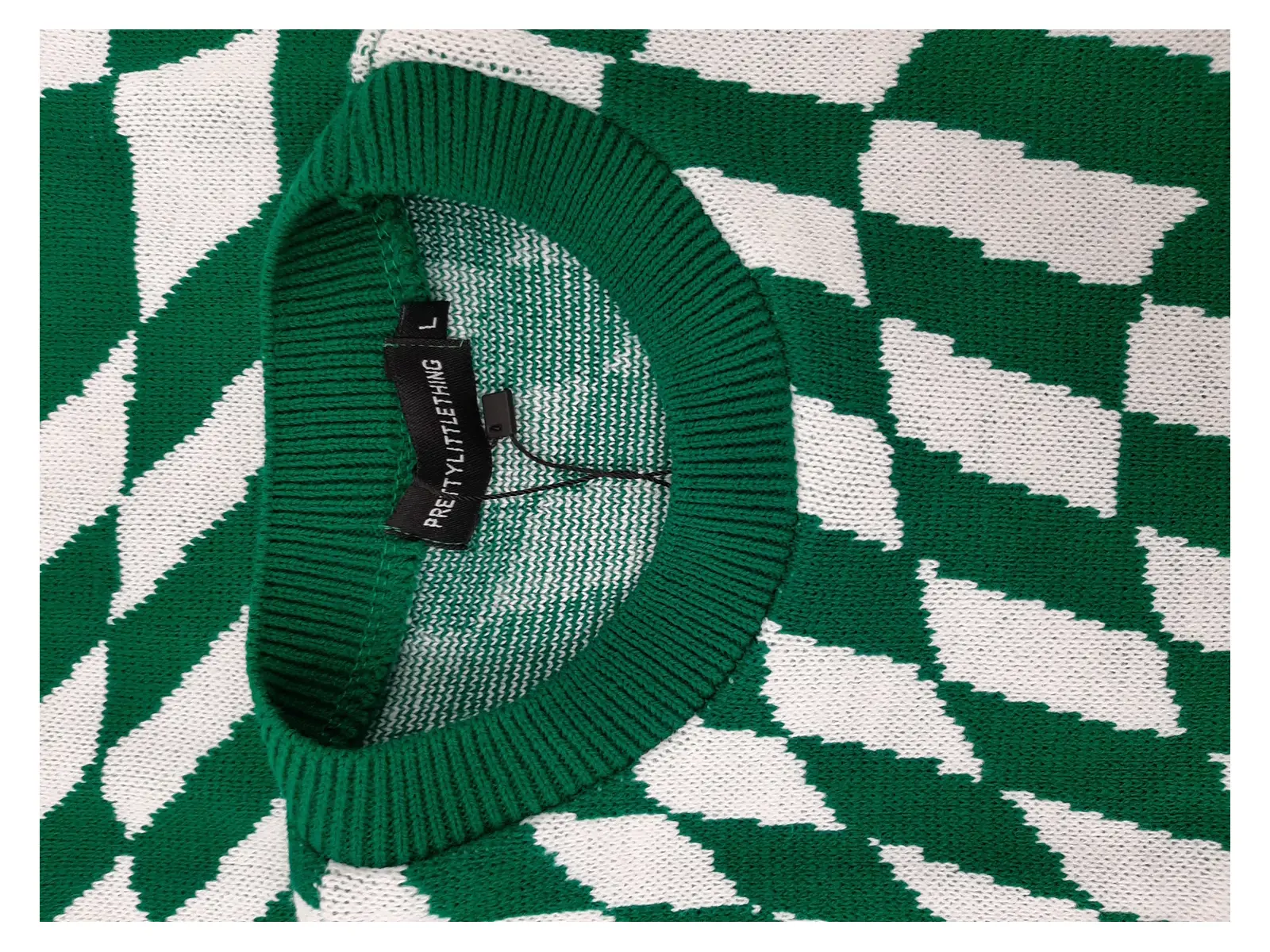 PRETTY LITTLE THING Women's Green Checkerboard Knitted Dress - UK Size Large