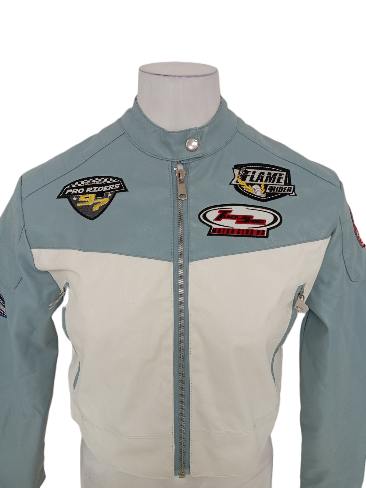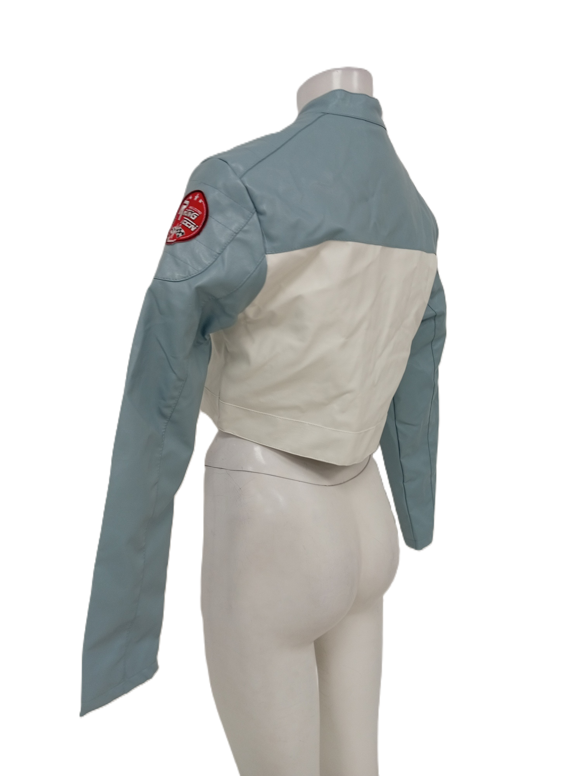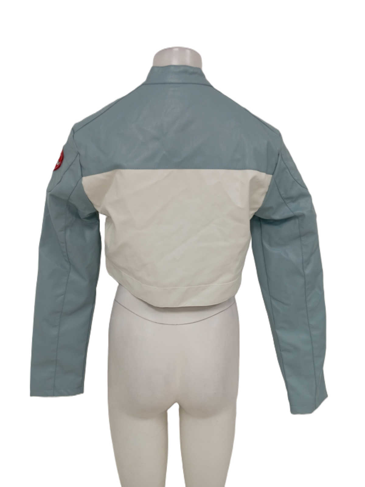 • Sleek Faux Leather: The faux leather material gives the jacket a bold, modern look, while being animal-friendly.