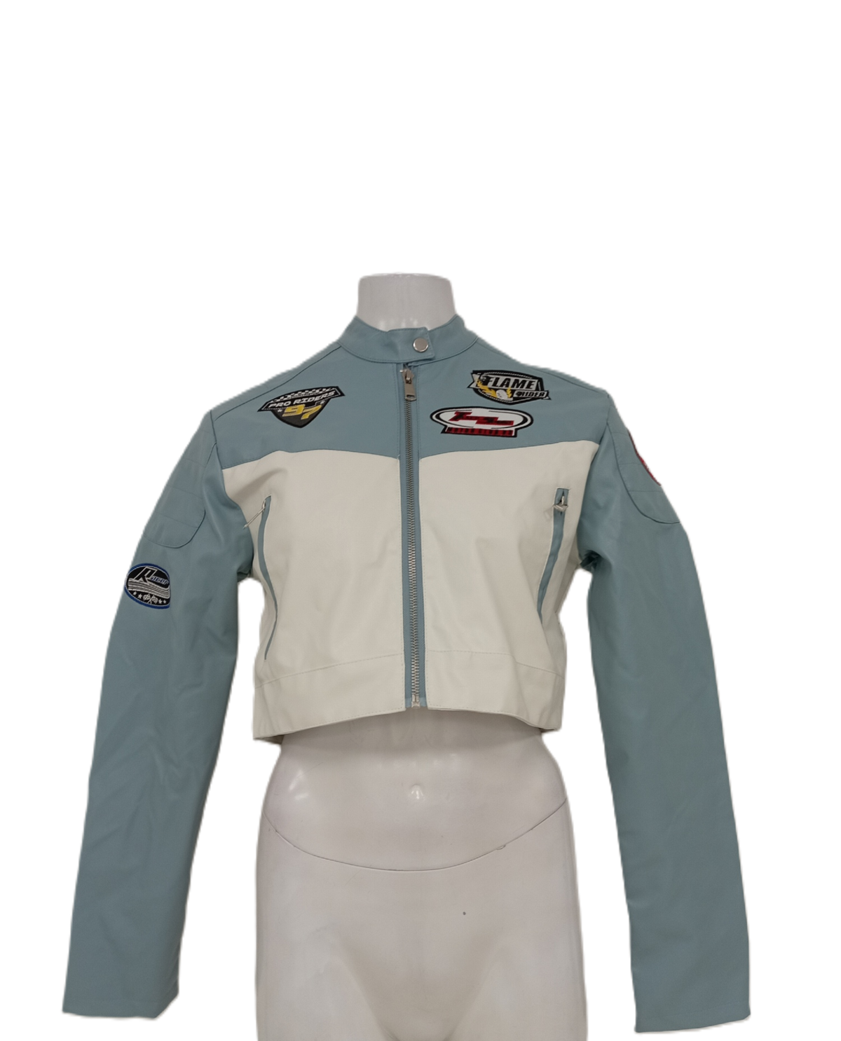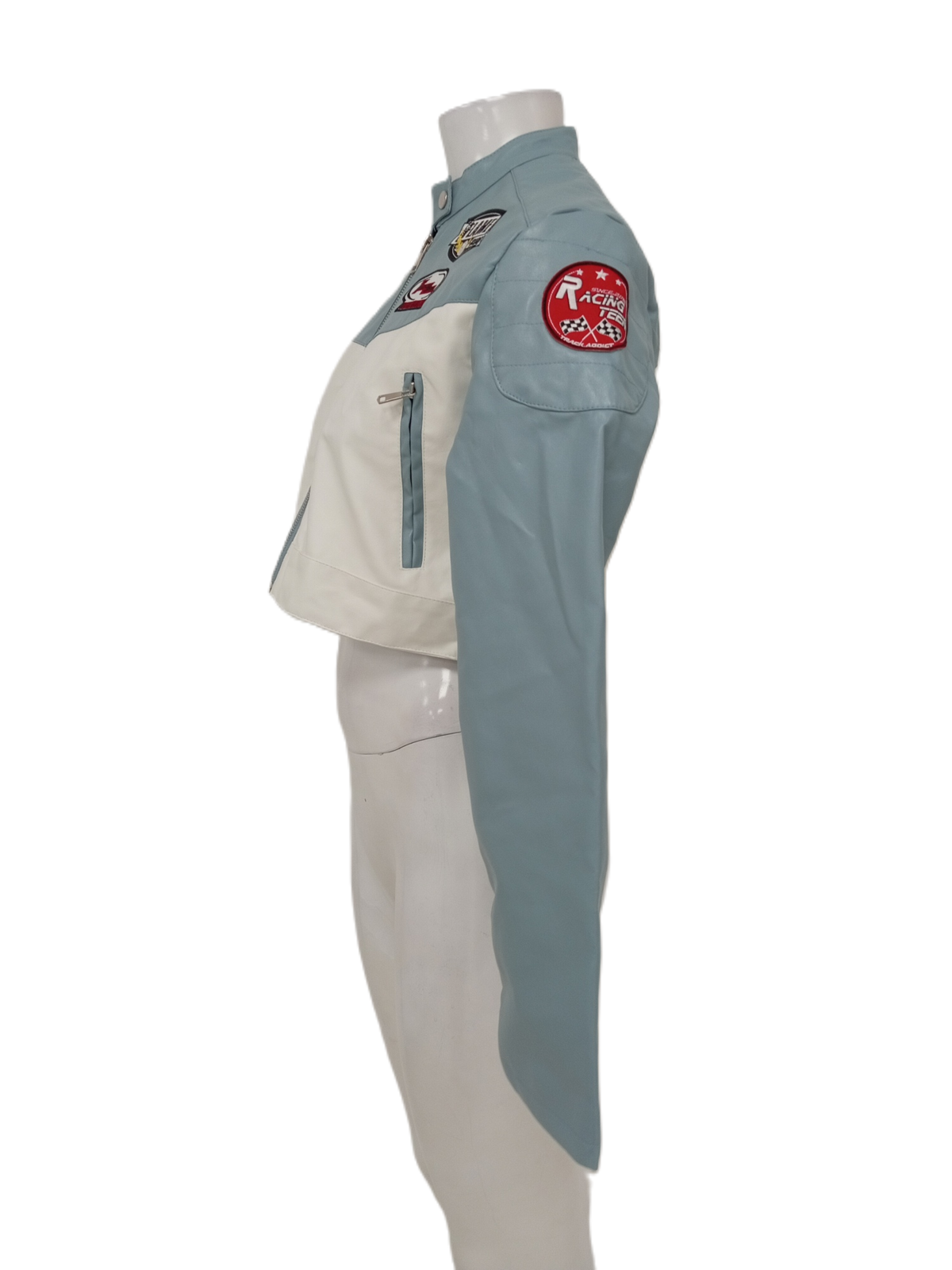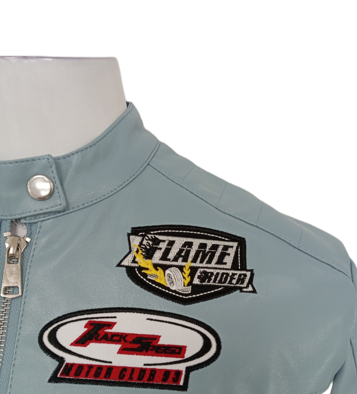 • Sleek Faux Leather: The faux leather material gives the jacket a bold, modern look, while being animal-friendly.