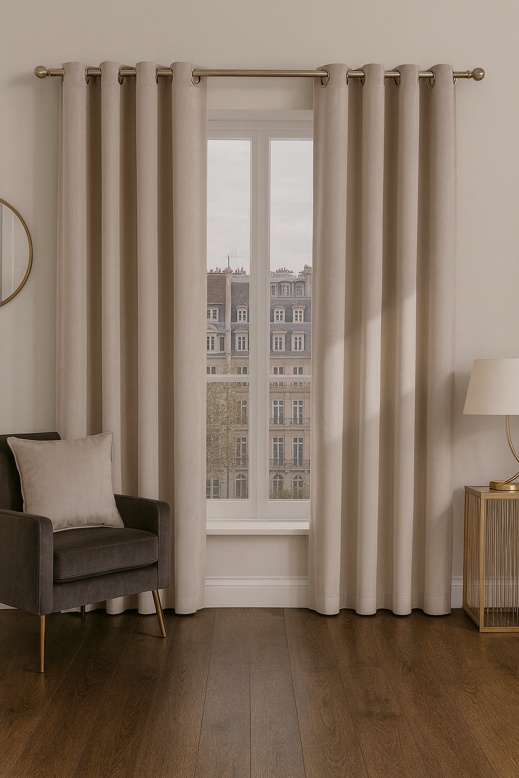 Designed with a modern eyelet header for easy hanging and an elegant drape, these curtains combine practicality with timeless appeal. Perfect for bedrooms, living rooms, or dining areas, they make a simple yet stylish choice for refreshing your home.