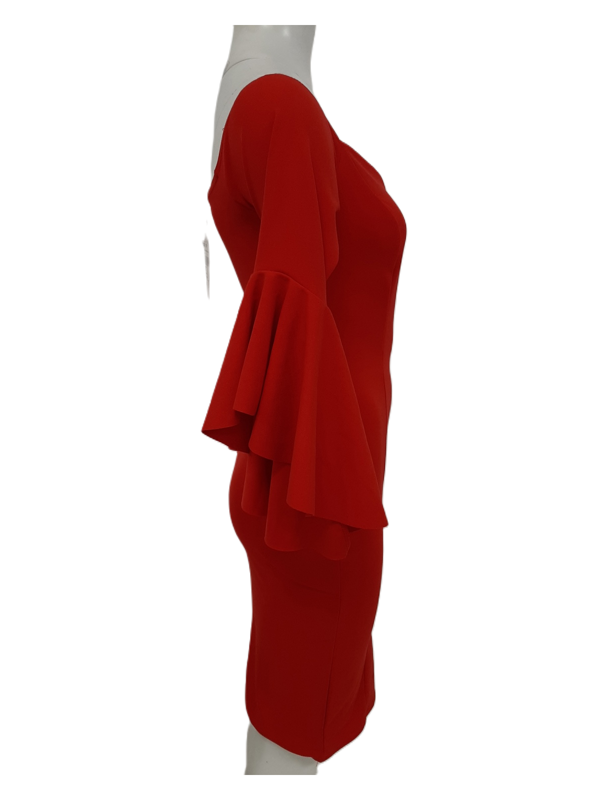 Quiz Women's UK 10 Red Dress Flared Bell Sleeve Evening Party Outfit Pre-Loved