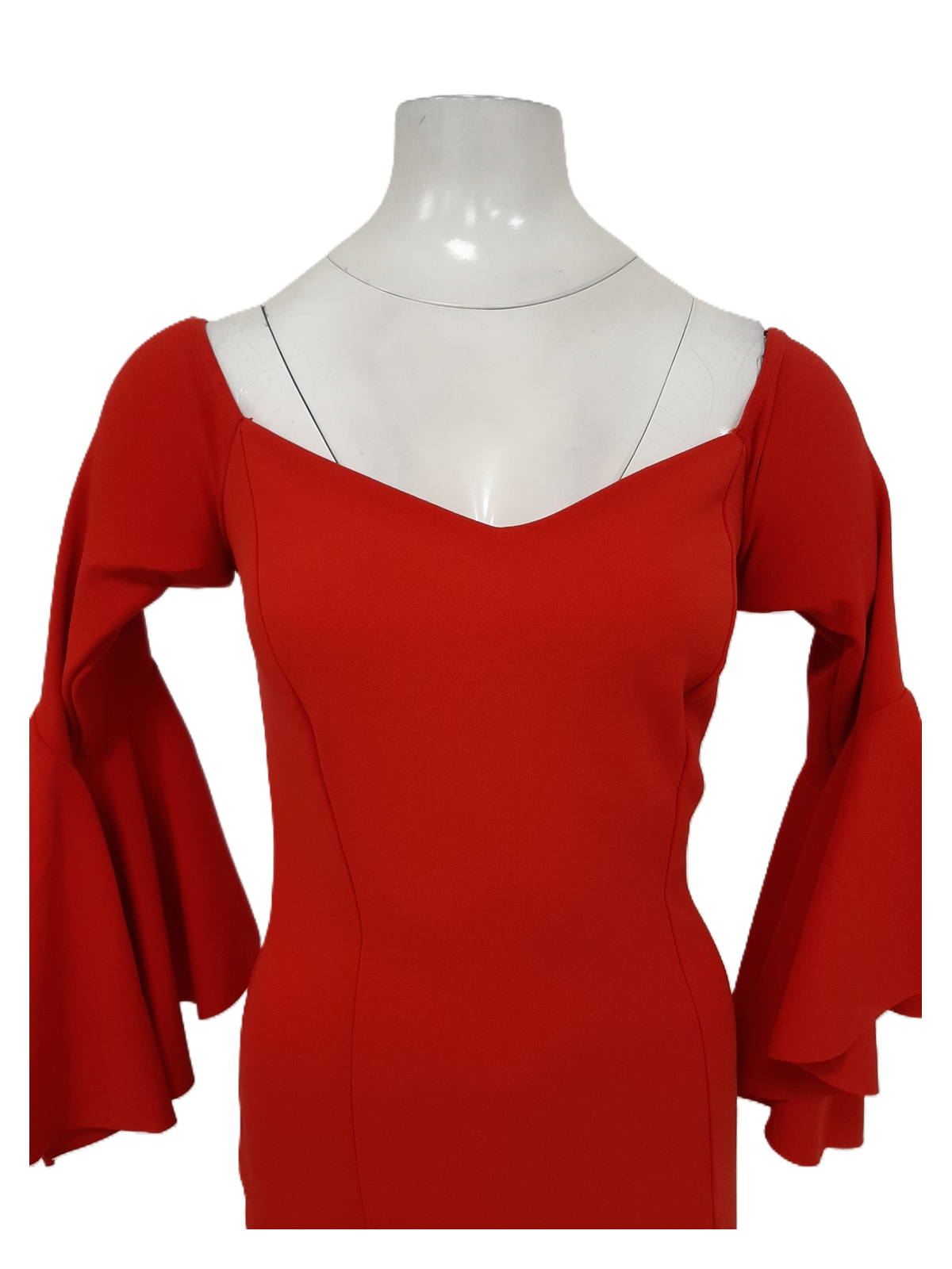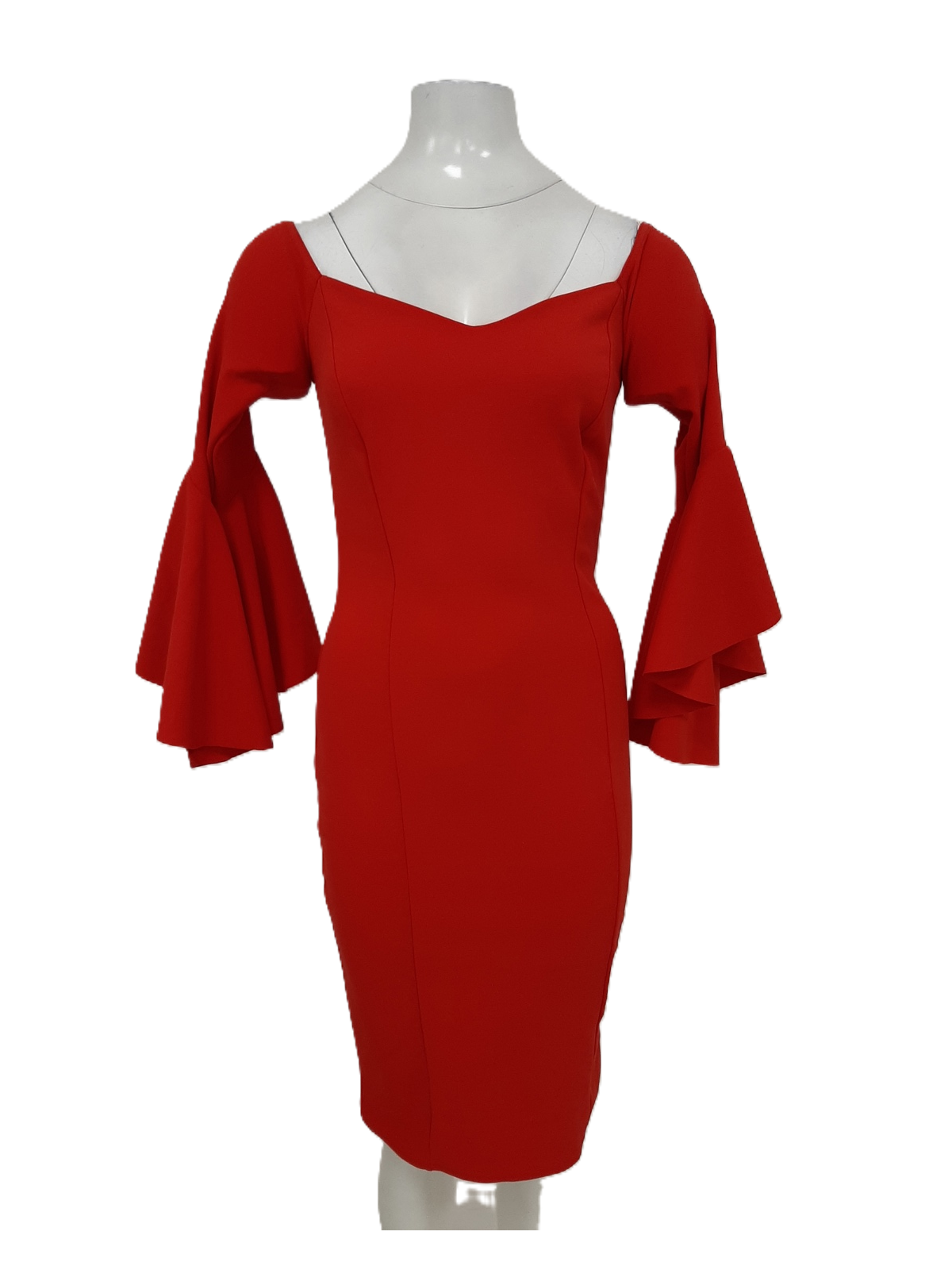 Make a statement with this QUIZ red dress, designed for elegance and sophistication. Featuring flared bell sleeves and a flattering silhouette, this dress is perfect for evening parties and special occasions.