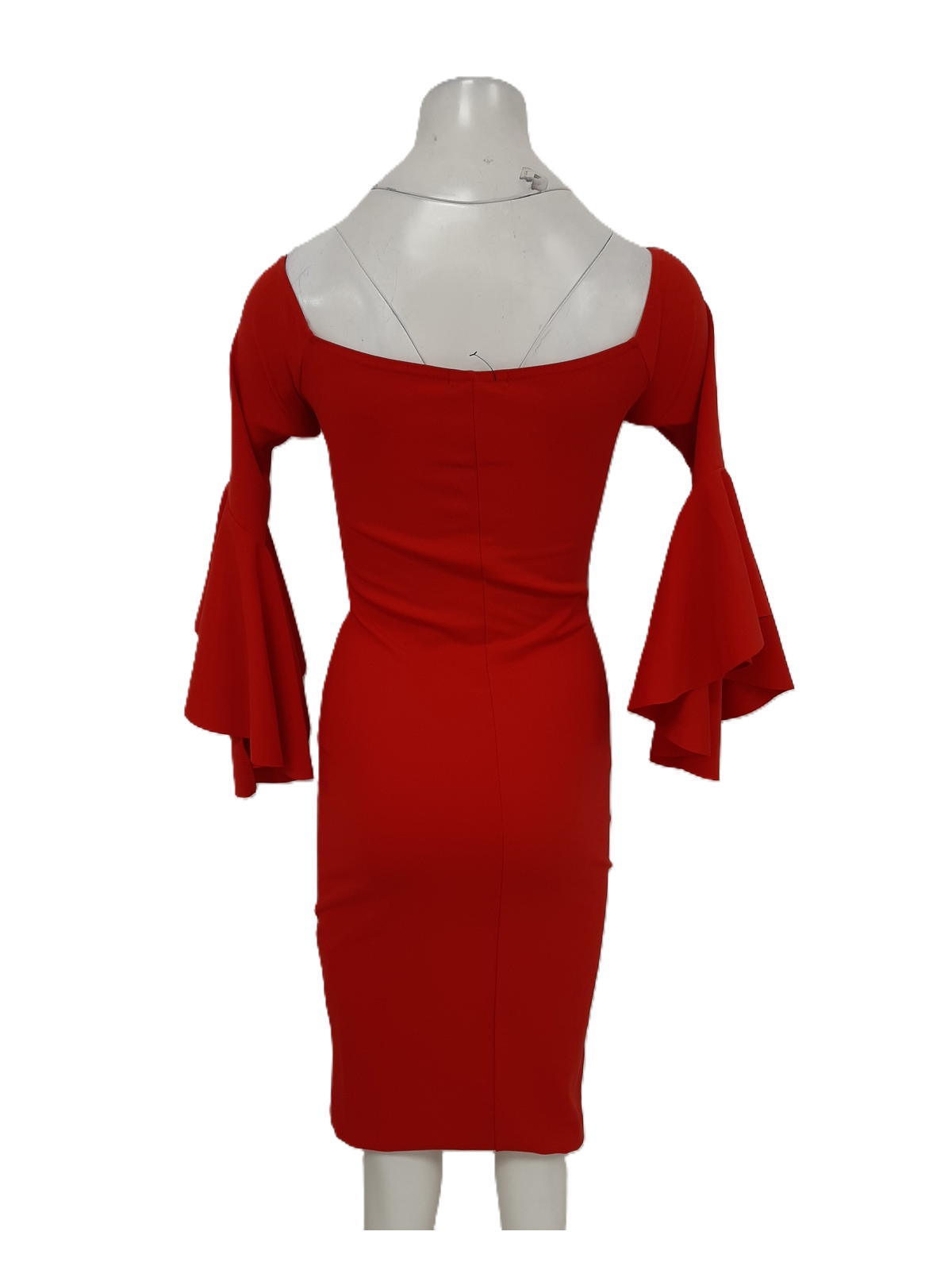 QUIZ Women's Red Flared Bell Sleeve Dress - UK Size 10