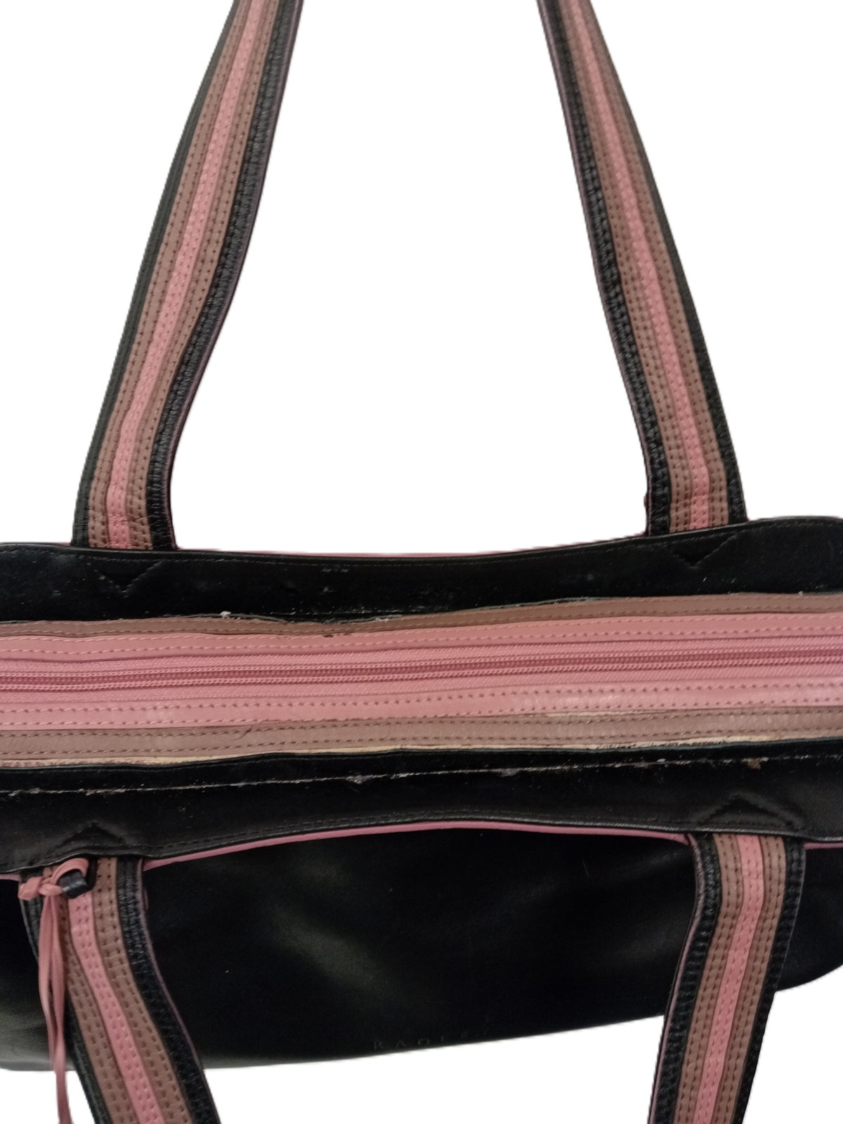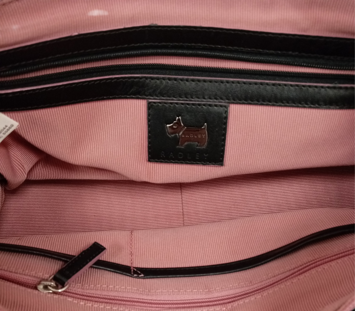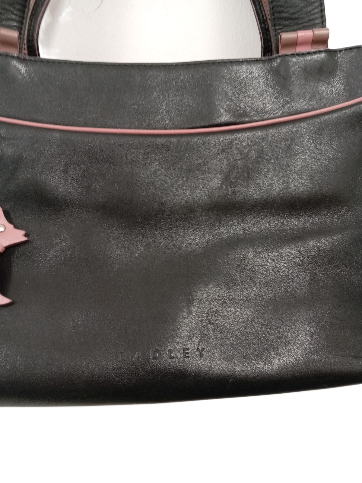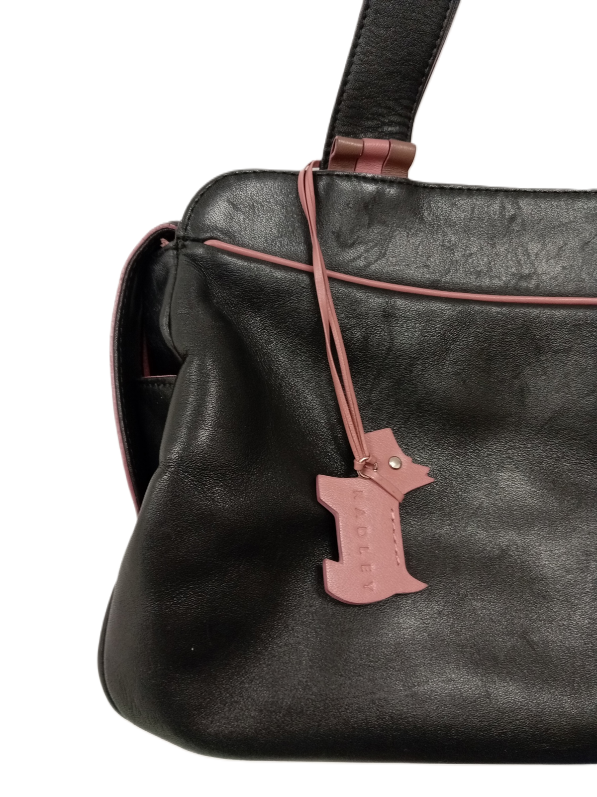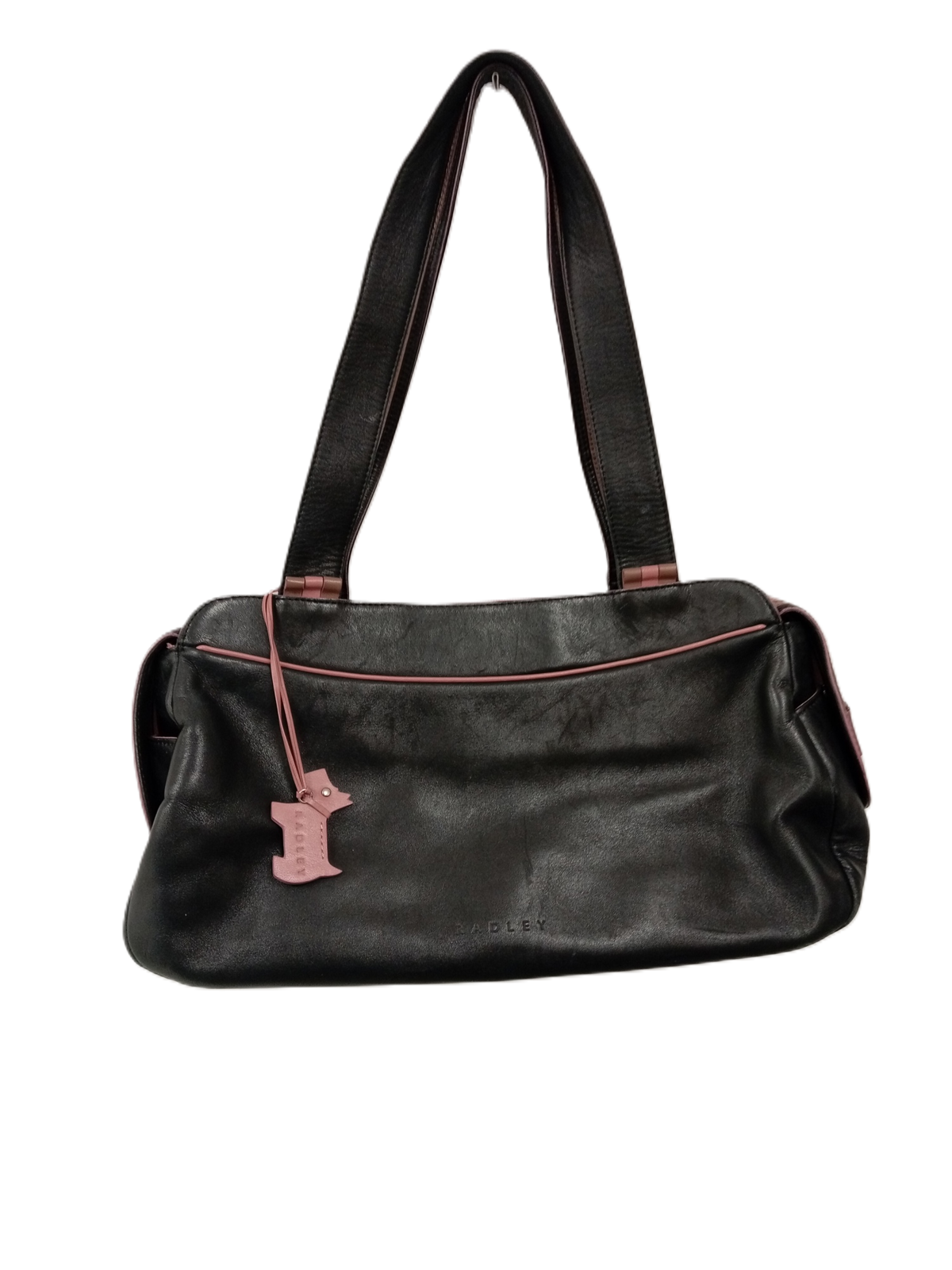 RADLEY Ladies Black/Pink Leather Zip Up Shoulder Style Hand Bag Pre-Loved