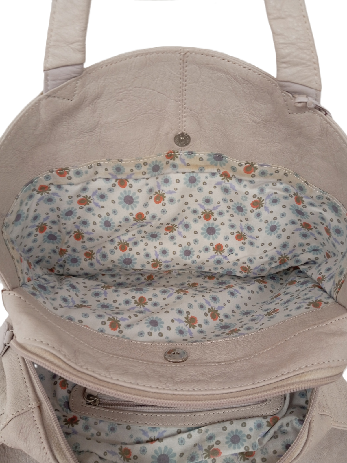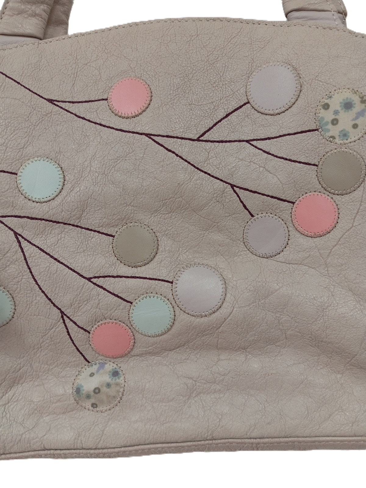 Despite the wear, it remains a stylish and functional choice for those who appreciate quality craftsmanship with a touch of floral flair.