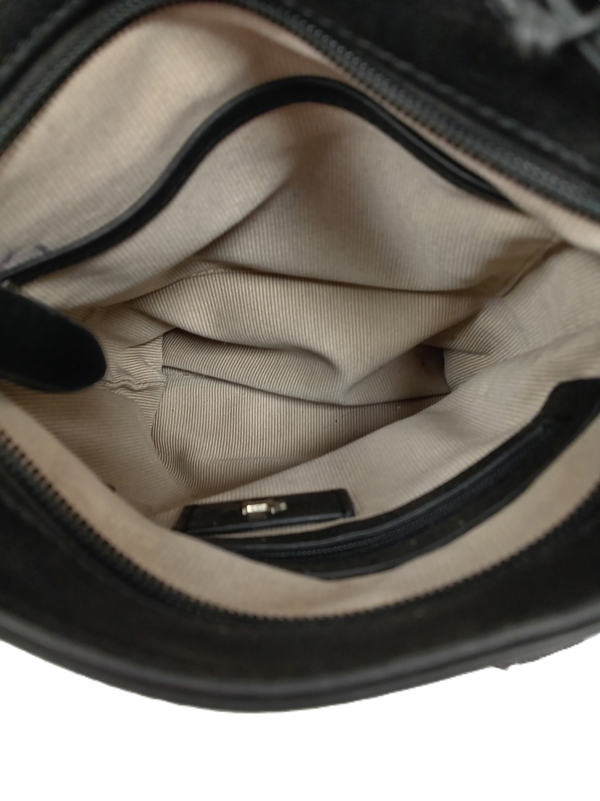• Sleek black leather exterior with a smooth, refined finish