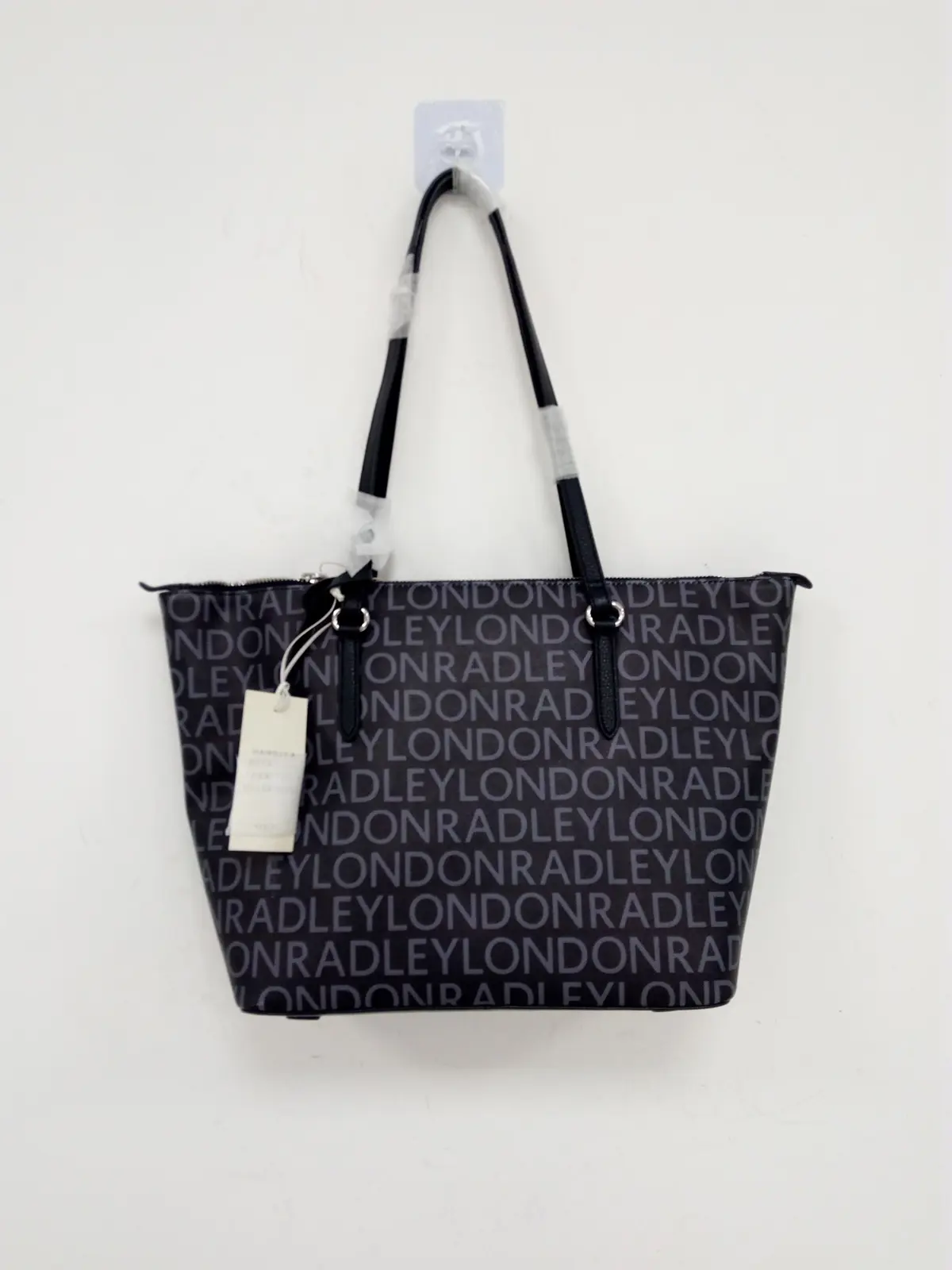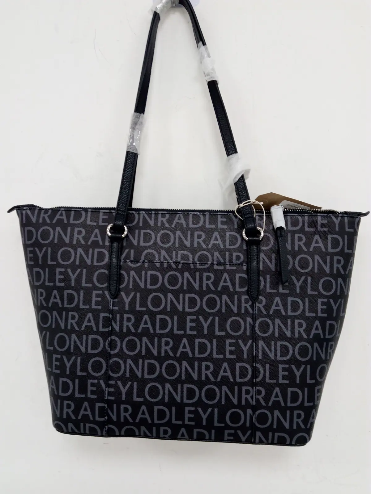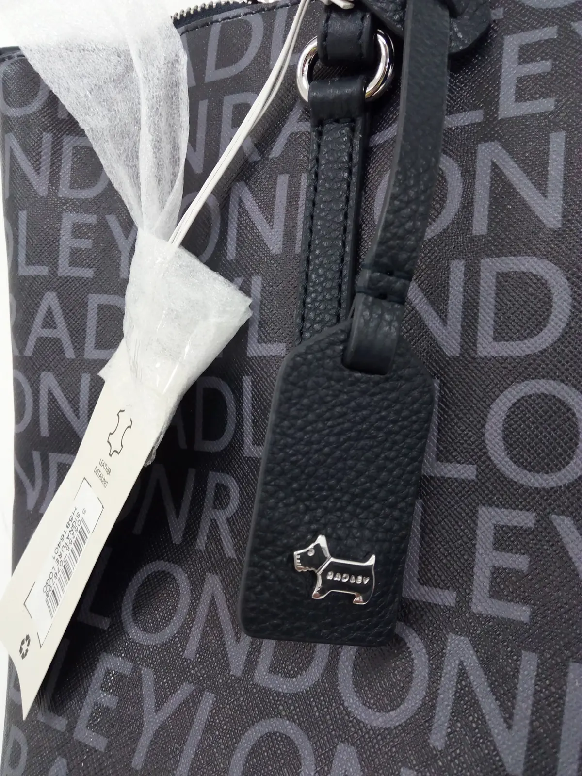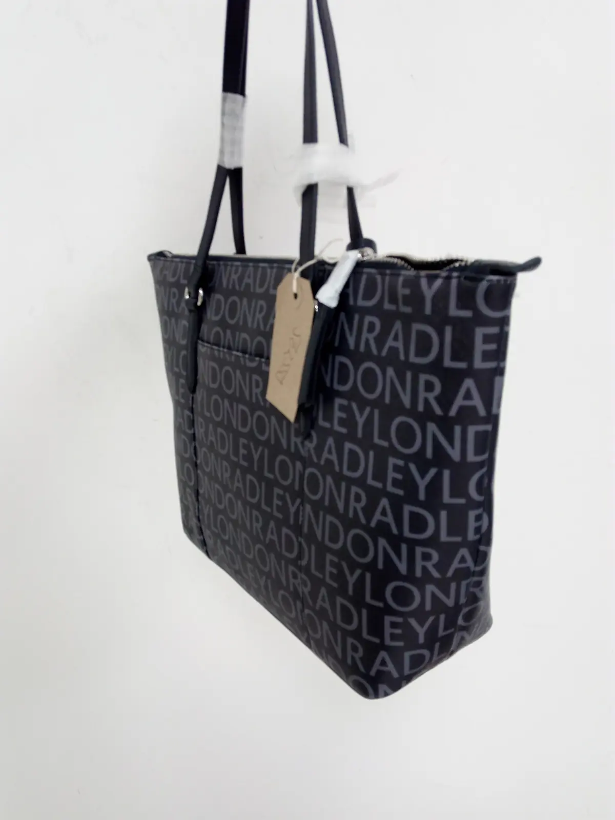 RADLEY London Ladies Black Grey Logo Designer Zip Up Shoulder Hnadbag Pre-Loved