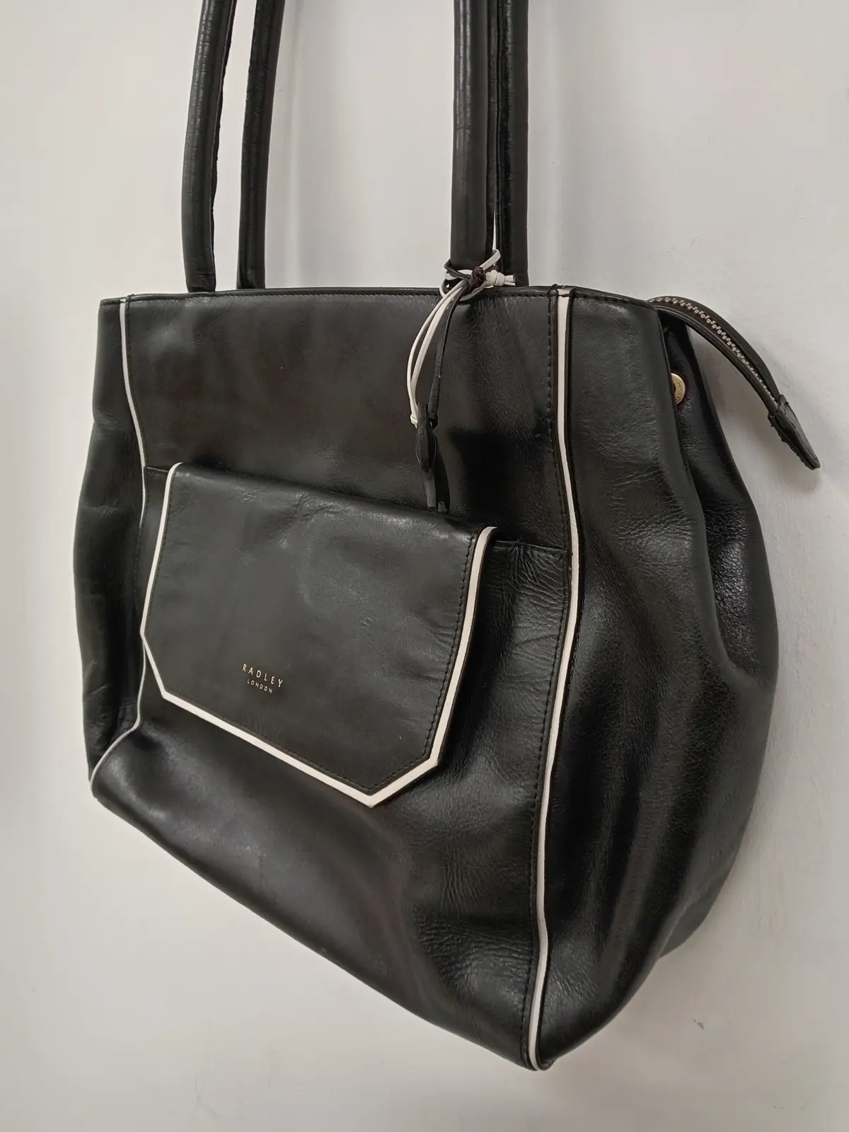 RADLEY London Ladies Size Large Zip Up Casual Black Leather Handbag Pre-Loved
