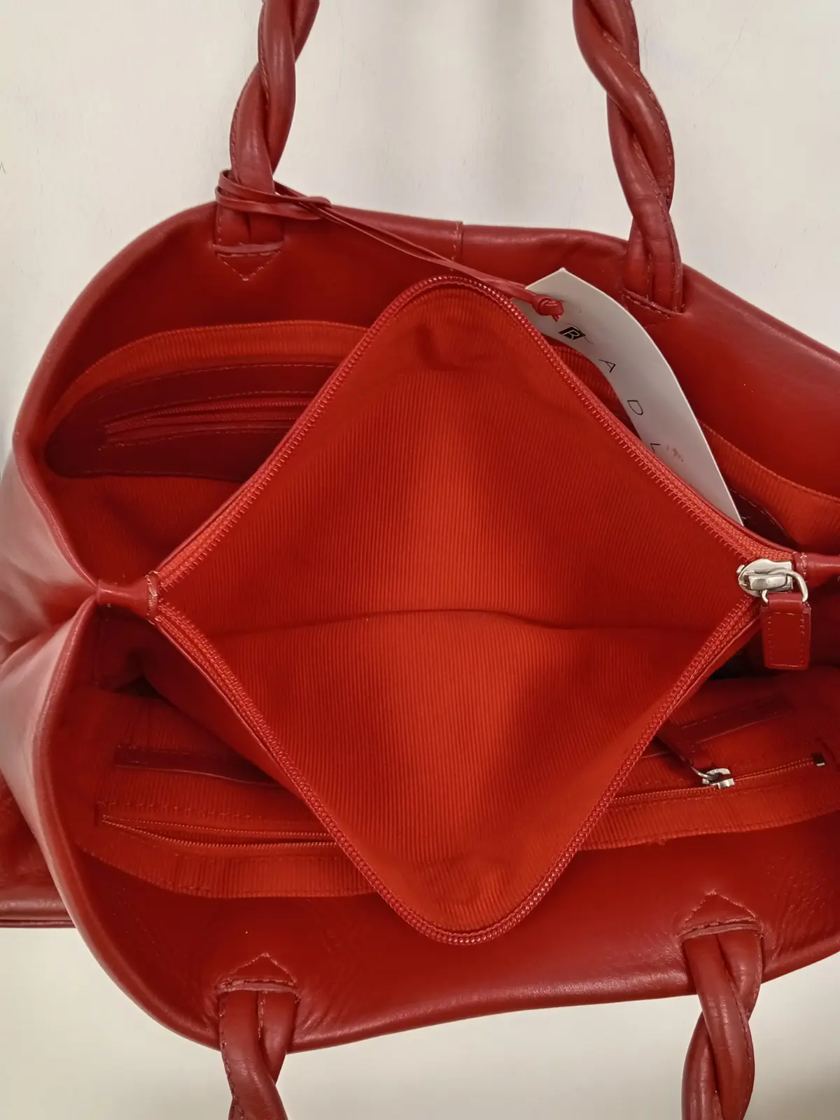RADLEY London Large Red Leather Handbag with Dust Bag & Leather Cream – Pre-Loved (Unused, With Tag)