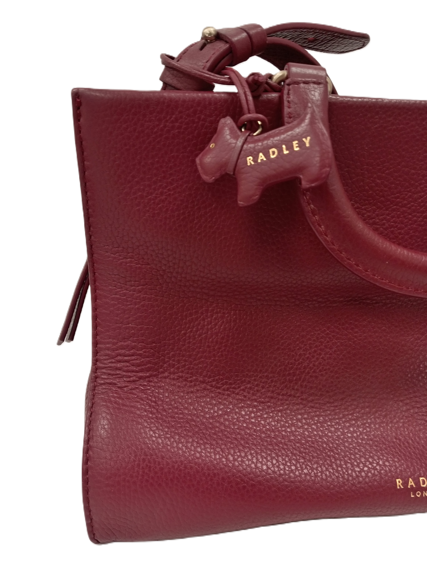 RADLEY London Leather Ladies UK Size Plum Red Zip Up Casual Hand Bag Pre-Loved