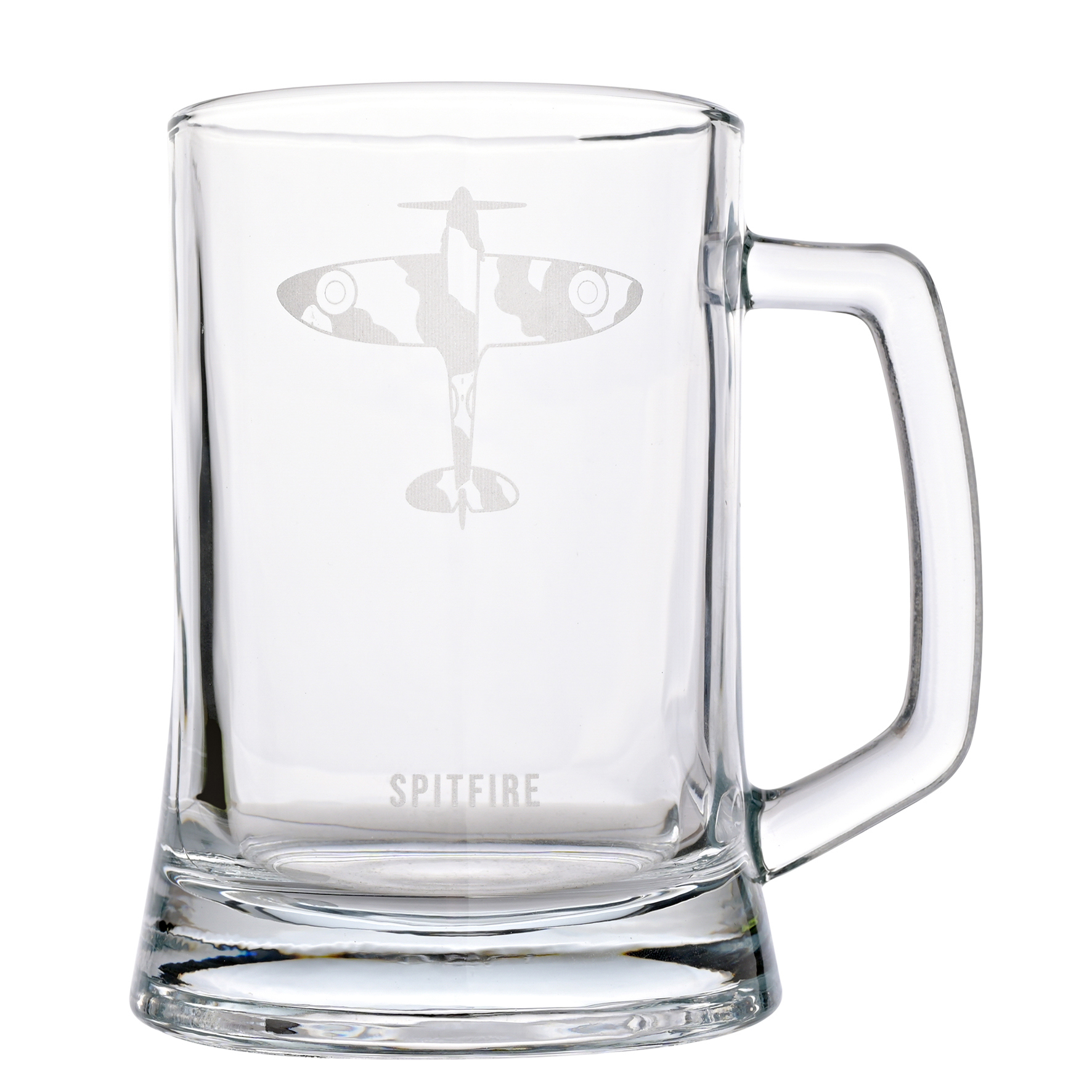 Let customers take flight with this stylish glass tankard, perfect for any RAF enthusiast. An iconic Spitfire design etched onto the front makes this mug a real talking point. With its sturdy handle and clear glass construction, it's ideal for enjoying a favourite brew whilst celebrating the RAF's rich history. The stunning artwork ensures it will add character to a collection. An ideal gift for a friend or family member who loves aviation, it's sure to be treasured for years to come.