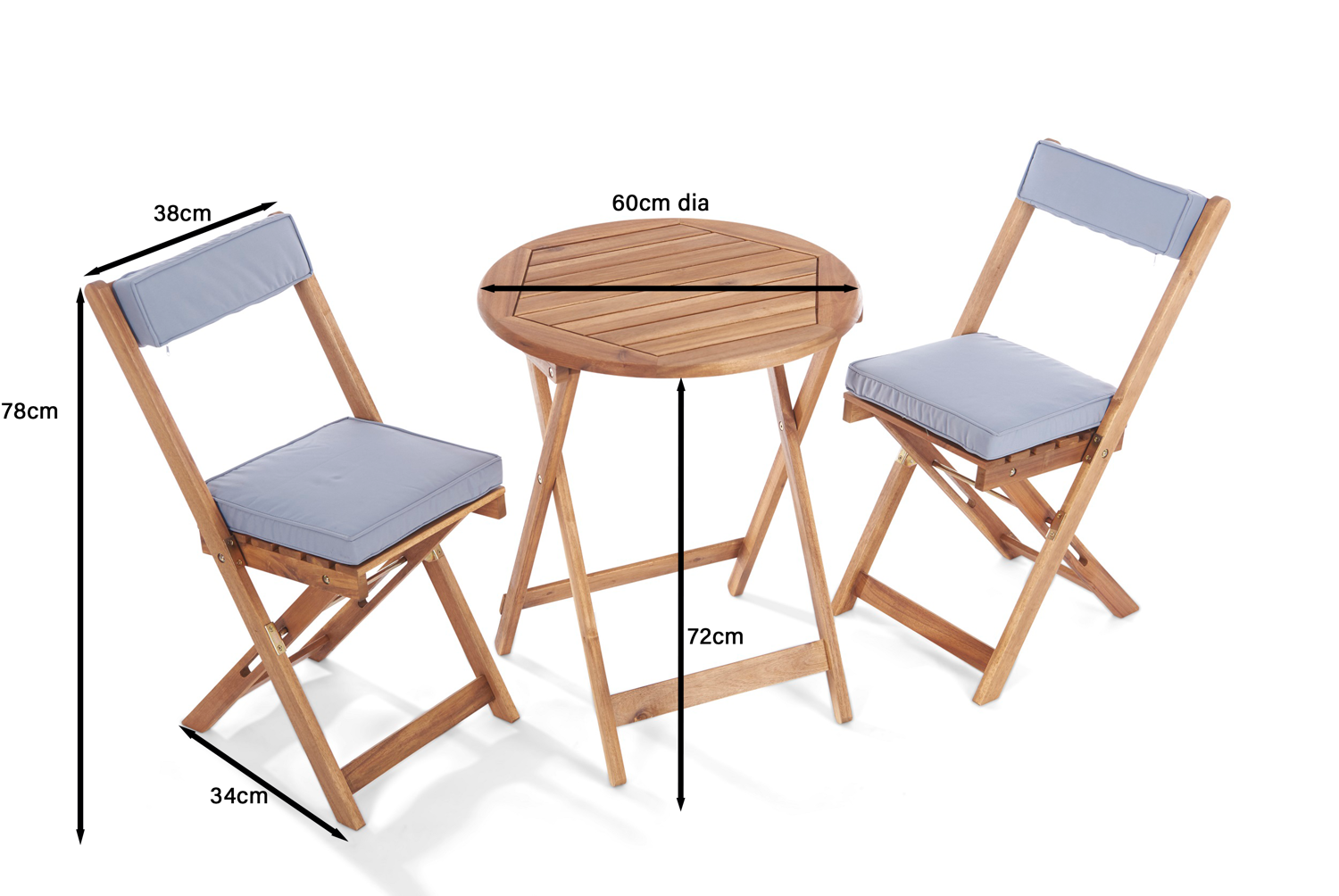 Raffles Garden Bistro Set with Cushions - Natural Wood