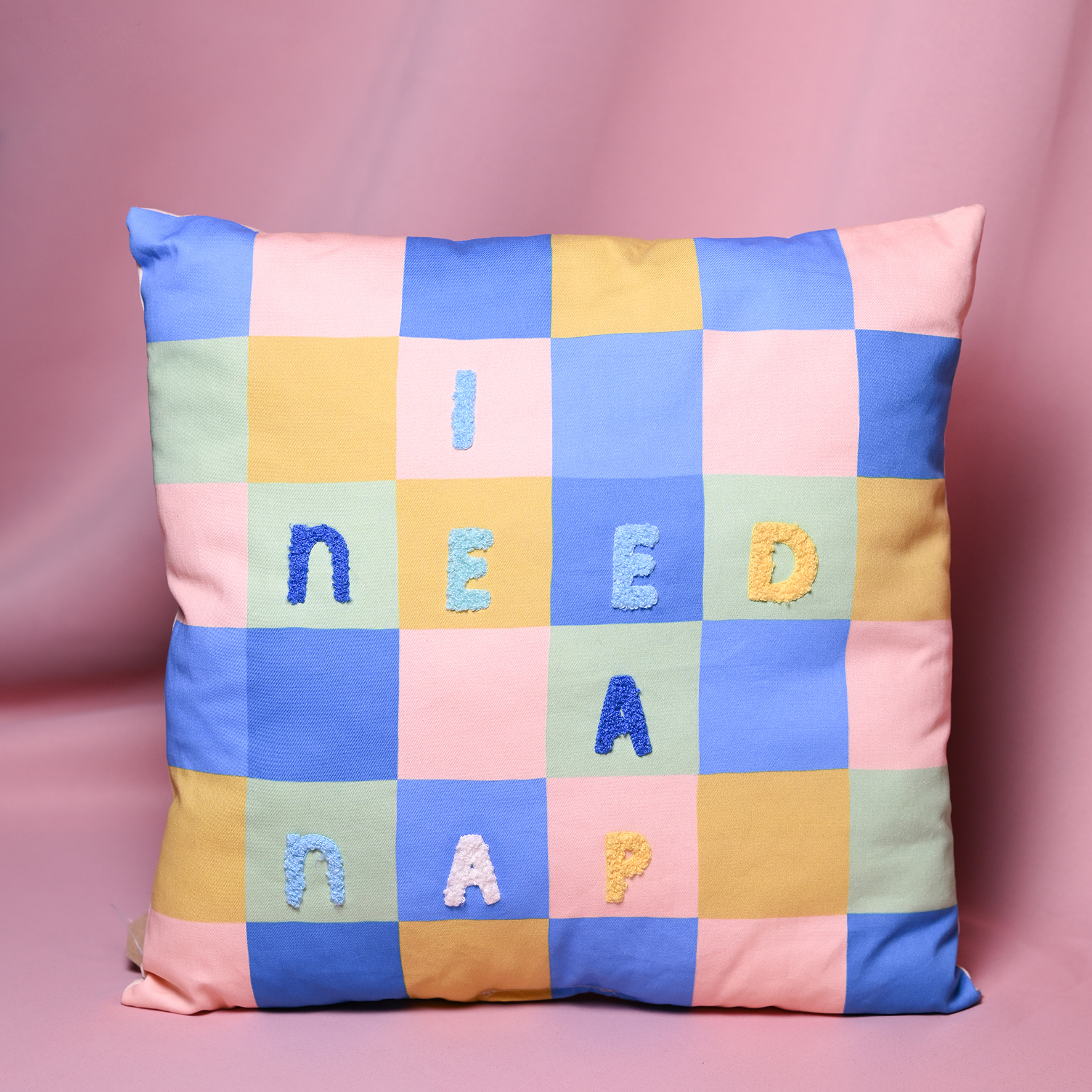 Brighten up your space with the Raspberry Blossom Cushion – "I Need A Nap", a quirky reminder to slow down and recharge. With its bold slogan and vibrant design, this cushion adds a splash of colour and a touch of whimsy to any living area.